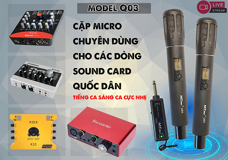 Với thiết kế Để hát Karaoke thả ga, một chiếc micro hiện đại, tiện nghi, cho chất giọng hay là không thể thiếu. Dòng micro không dây MTMAX Q03, kết nối không dây đơn giản, nhanh chóng, đầu thu sử dụng pin sạc dung lượng lớn đảm bảo hoạt động bền bỉ, hát thả ga mà không cần sạc quá nhiều lần. Micro hát Karaoke MTMAX Q03 là dòng sản phẩm cao cấp hiện nay mà bất cứ gia đình, quán hát hay các cuộc vui chơi không thể thiếu.