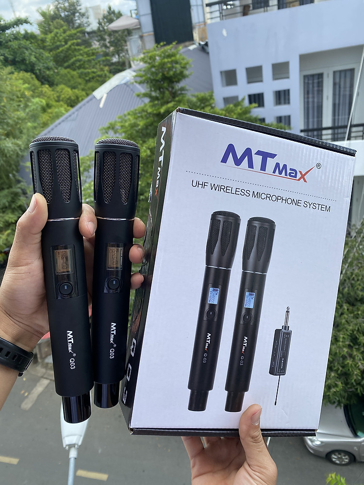 Micro không dây đa năng MTMAX Q03 HÀNG CAO CẤP thiết kế lạ - Micro không dây giá tốt, sử dụng cho mọi loại thiết bị âm thanh - Micro dành cho loa kéo, loa bluetooth, amply - Màn hình Led hiển thị thông số - Âm thanh cực hay, giá cực rẻ