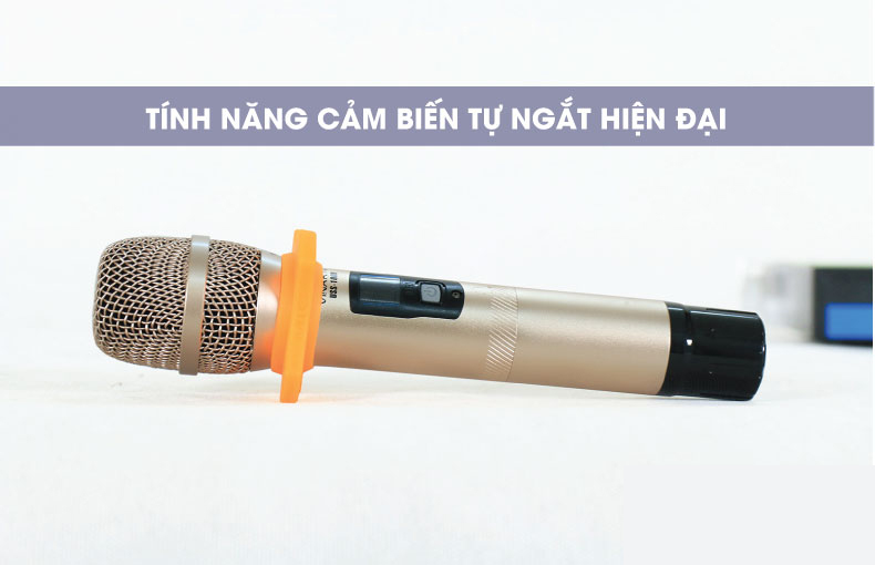 Tính năng cảm biến tự ngắt là tính năng công nghệ hiện đại nhất hiện nay mà tất cả micro không dây VinaKTV đều được tích hợp vào. Tính năng này có nghĩa là : Sau 5s không hát hay đặ mic xuống bàn thì tay mic sẽ tự động ngắt, khi cầm mic lên hát thì tay mic sẽ tự động nhận tín hiệu âm thanh trở lại mà không cần bạn phải bật lại nút khởi động. Tính năng này giúp mic không bị ù, rú khi đặt 2 tay mic gần nhau gây khó chịu. Sau 5 phút không sử dụng tay mic sẽ ngắt nguồn giúp tiết kiệm tối đa lượng Pin tiêu hao, Và sau 15 phút mà không nhận được tín hiệu âm thanh đầu vào thì toàn bộ hệ thống micro sẽ tự ngắt, giúp tiết kiệm điện năng tiêu hao và bảo trì thiết bị của bạn.