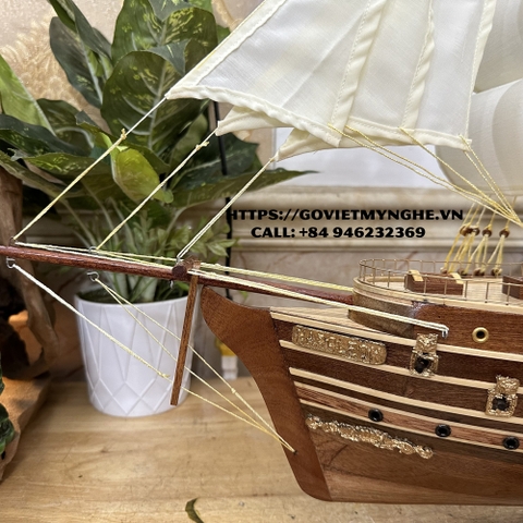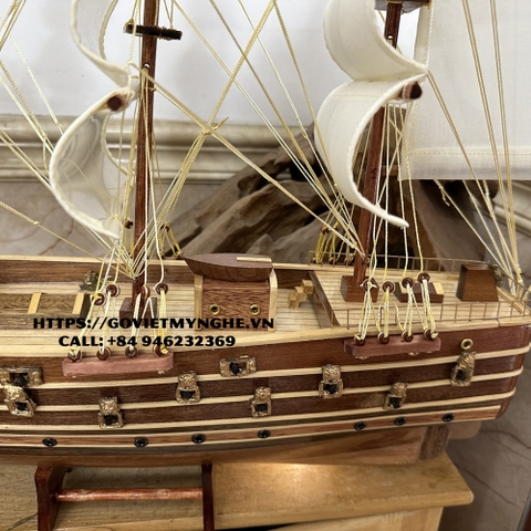 | Model | Mô hình thuyền gỗ thuyền trang trí tàu chiến cổ Napoleon của Pháp - Thân tàu dài 60cm- Buồm vải màu trắng vàng |