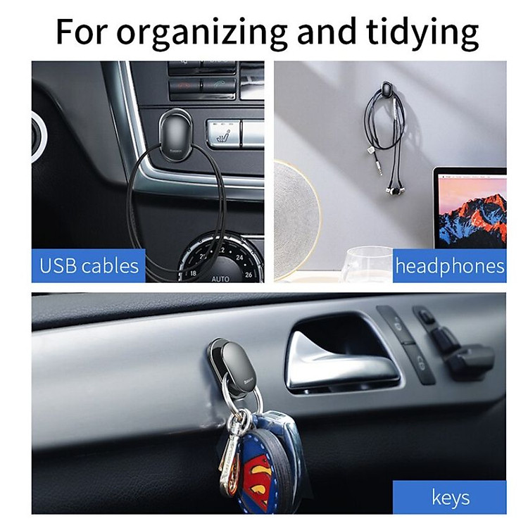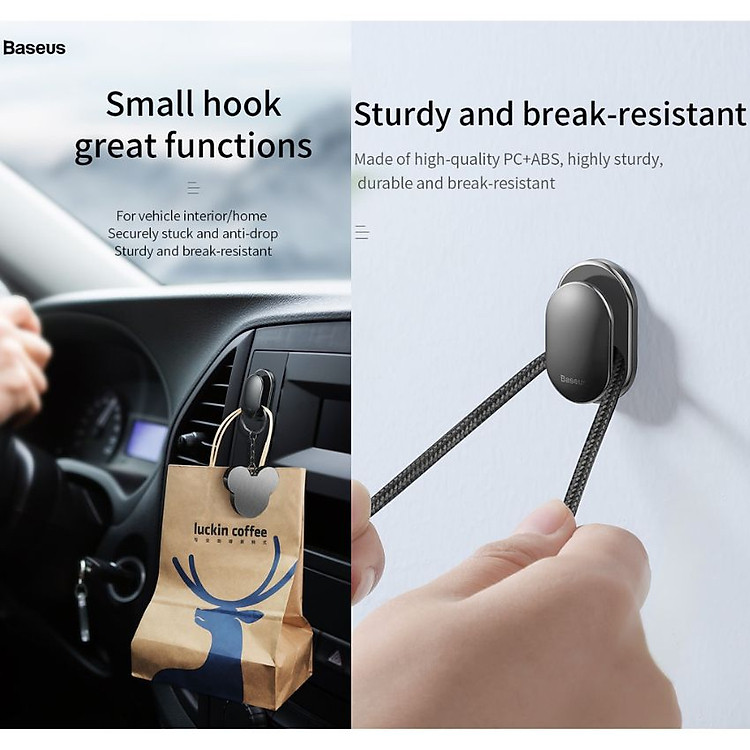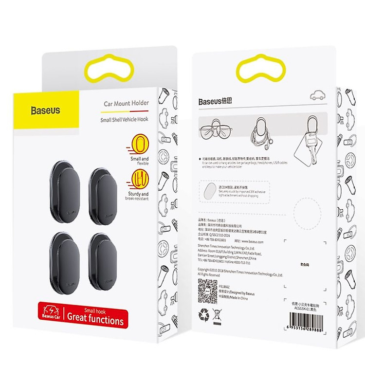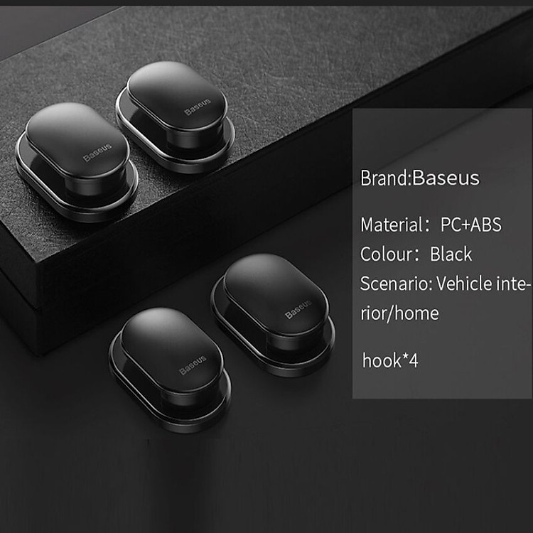 Giới thiệu sản phẩm Móc dán treo đồ đa năng Baseus Small Shell Vehicle Hook (4PCS ,Sticker Paste Holder) dùng trong xe hơi, tường nhà, bếp