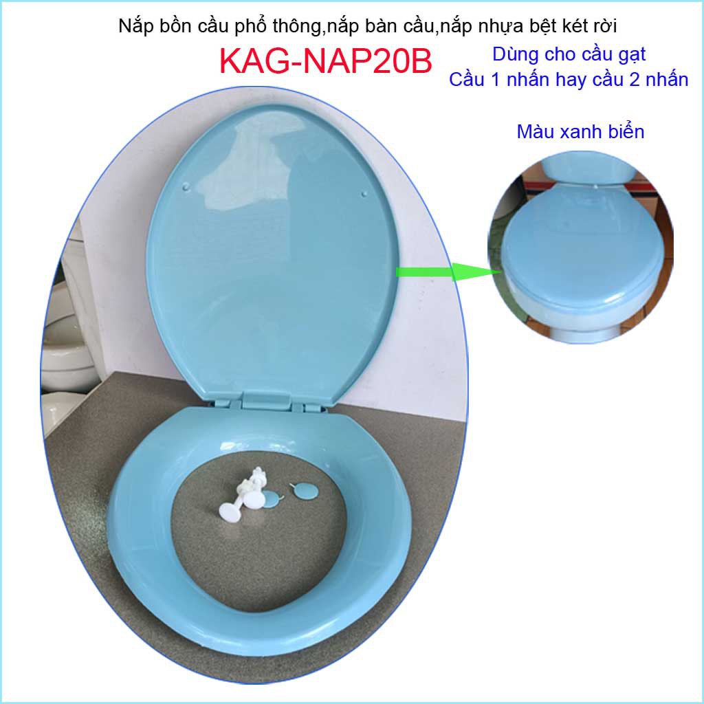Giới thiệu Nắp bàn cầu phổ thông KAG-NAP20B, nắp đậy bồn cầu 2 khối Xanh Biển