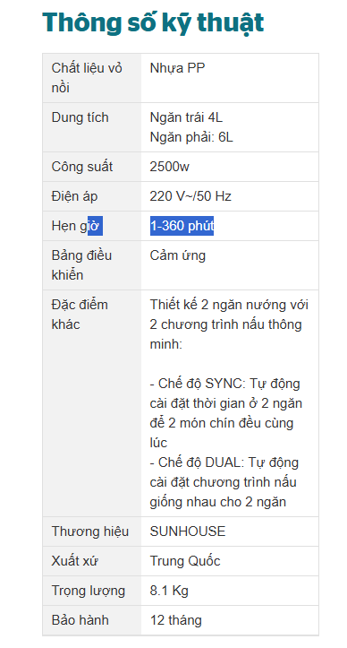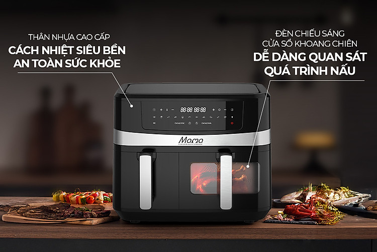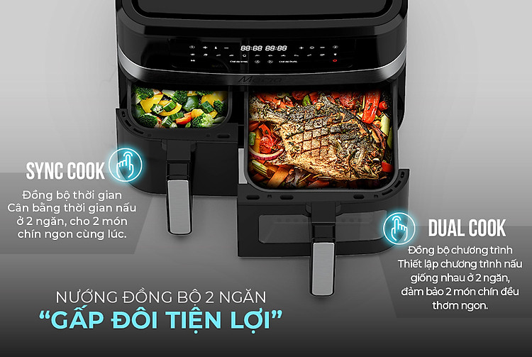 Nồi chiên không dầu 2 ngăn 10L SUNHOUSE MAMA SHD4098 nổi bật với thiết kế 2 ngăn tiện lợi với tổng dung tích lên đến 10L, cho phép chế biến cùng lúc nhiều món ăn. Bảng điều khiển cảm ứng hiện đại đi kèm 11 chương trình nấu đa dạng, giúp bạn dễ dàng tạo ra những bữa ăn thơm ngon, nhanh chóng và tiện lợi.