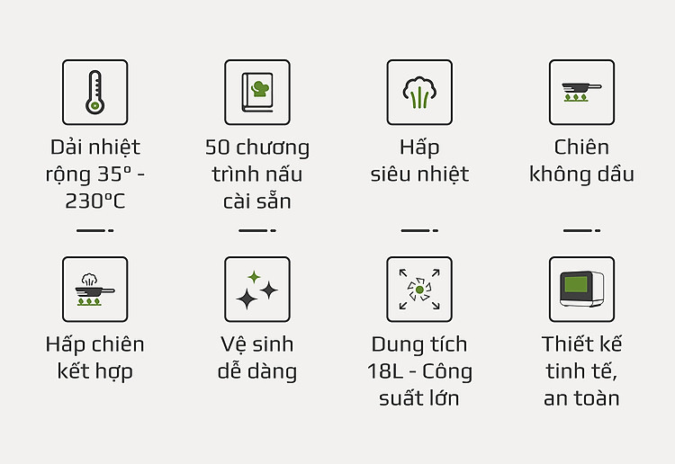 - Với mức nhiệt rộng mỗi loại thực phẩm sẽ có dải nhiệt phù hợp riêng giúp thực phẩm chín đủ độ đồng thời giữ được trọn vẹn hương vị tự nhiên, cùng với dinh dưỡng vốn có của mình.