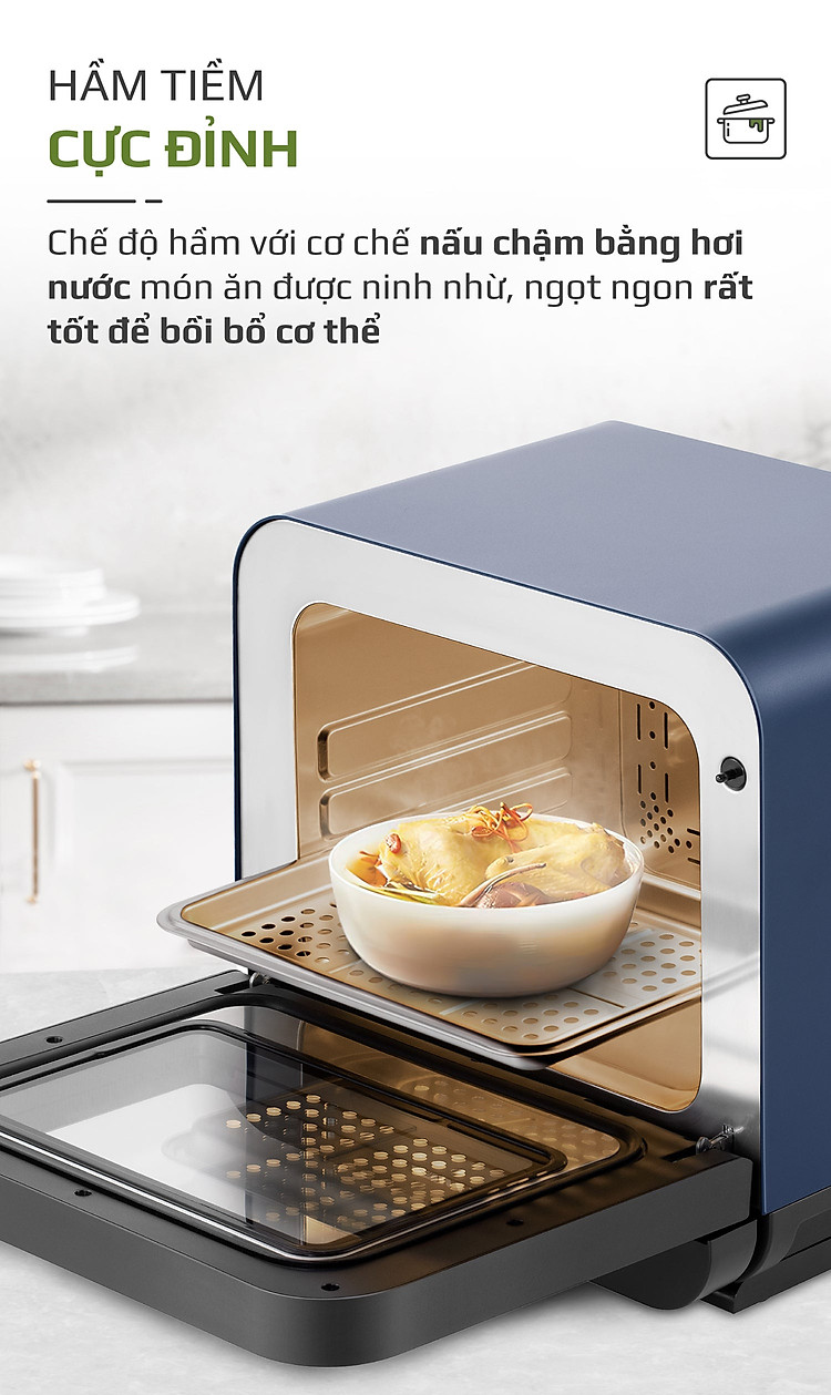 - Với công nghệ phun hơi nước siêu nhiệt giúp món ăn chín đều, giữ được độ mềm ẩm và vị ngọt tự nhiên của thực phẩm.
