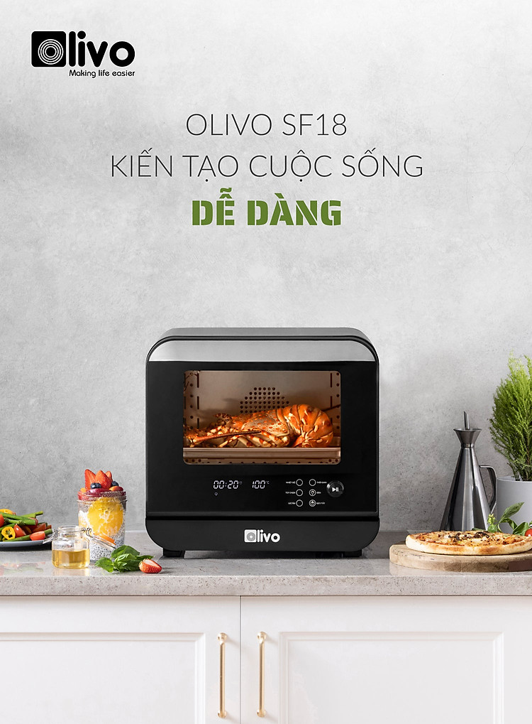 - OLIVO mang lại sự đột phá về công nghệ hết sức độc đáo khi kết hợp những tính năng như Hấp - Chiên không dầu - Chiên hấp kết hợp - Hầm chỉ trong một sản phẩm duy nhất là SF18.