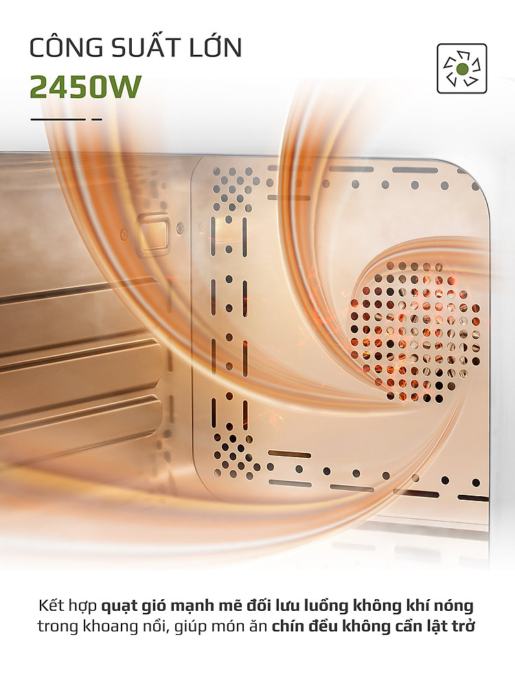13. Công suất lớn 2450W giúp nấu ăn nhanh hơn, thực phẩm chín đều không cần lật trở