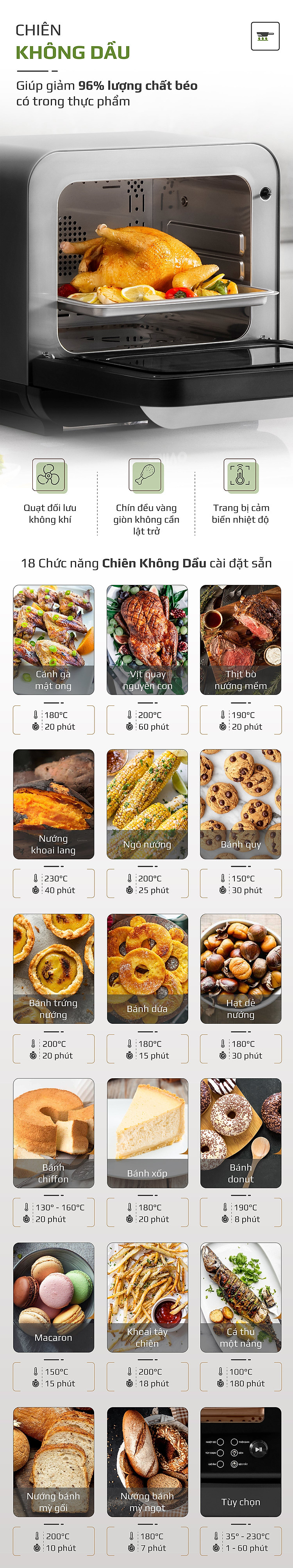 5. 18 Chức năng Chiên Không Dầu cài sẵn giúp giảm 96% lượng chất béo có trong thực phẩm