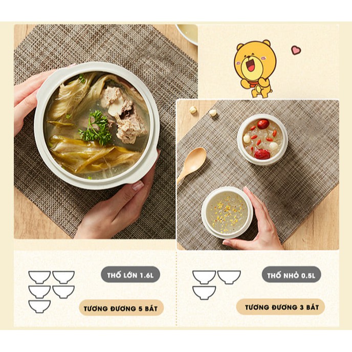 SẢN PHẨM 1: Nồi nấu chậm đa năng kèm lồng hấp Bear SUBE002 1.6L_ BẢN QUỐC TẾ ( Kèm Lồng Hấp)
