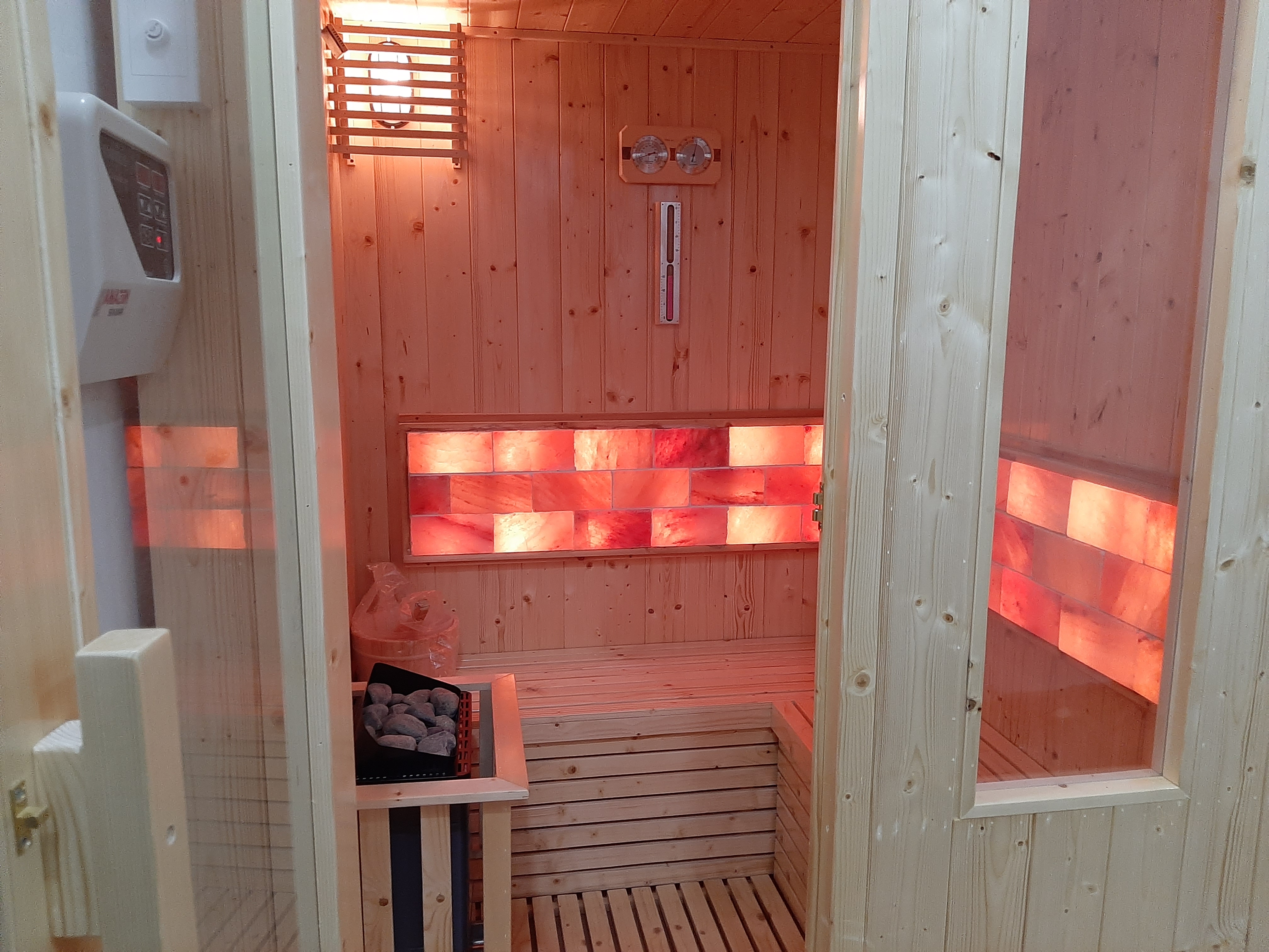 + Phòng toàn bộ nội thất (Tường, Trần, Sàn và Ghế Ngồi) là gỗ Thông 100% Nhập Khẩu từ Châu Âu: Phần Lan hoặc Newziland, Nga.