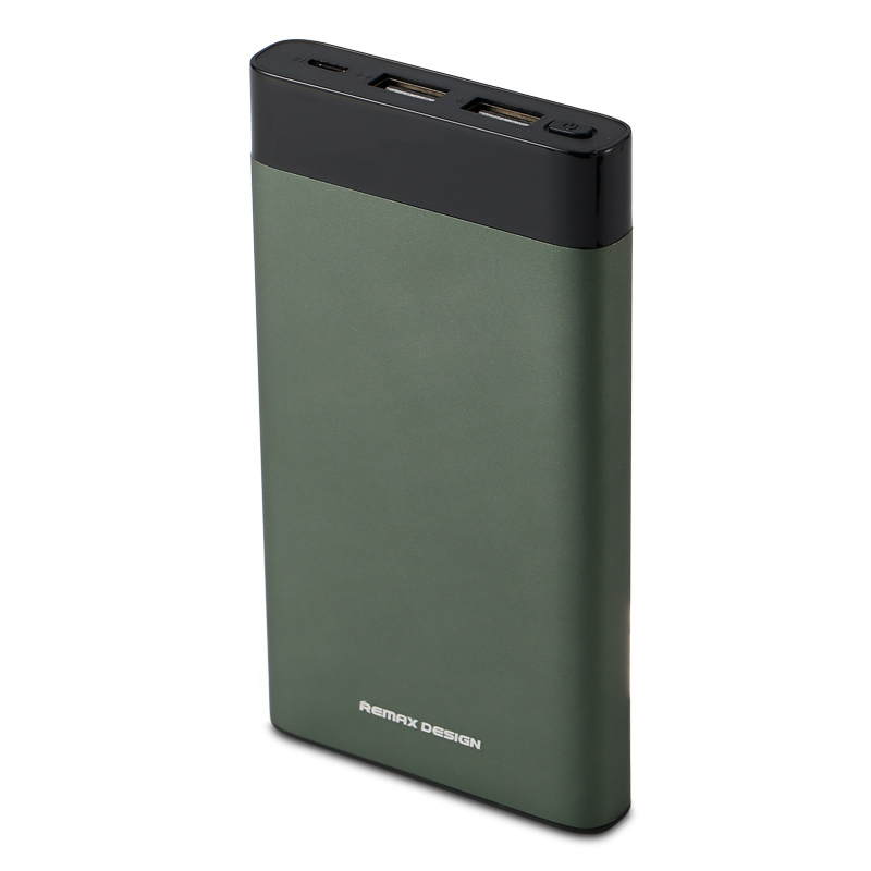 Pin sạc dự phòng RPP-120 dung lượng khủng với khả năng sạc 2 thiết bị cùng một lúc với thiết kế ấn tượng sẽ khiến cho chiếc smartphone yêu quý của bạn luôn trong trạng thái đầy tràn năng lượng, sẵn sàng hoạt động. Thiết kế mạnh mẽ – ấn tượng Đối với các thiết bị điện tử, bên cạnh tính năng, vẻ ngoài cũng nắm giữ một vai trò hết sức quan trọng. Đối với chiếc pin sạc dự phòng 10000mAh RPP-120 của Remax thì điểm nổi bật là lớp vỏ ngoài bóng bảy, nhẵn mịn làm từ chất liệu hợp kim sang trọng. Nút nguồn, 2 cổng USB output và cổng sạc input được sắp xếp trên cùng bề mặt, mang lại sự dễ dàng tiện dụng, dễ thao tác cho chiếc sạc dự phòng RPP-120 này. Thiết kế ba phiên bản ba màu sắc xanh lá cây, xám, đen lịch sự, sang trọng góp phần làm nổi bật sự mạnh mẽ cho sản phẩm. Dung lượng pin khủng Pin sạc dự phòng RPP-120 với dung lượng khủng lên đến 10.000mAh (có khả năng sạc đầy 3 lần chiếc Iphone X) cùng với thiết kế hai cổng sạc USB cùng một lúc cho phép sạc song song và làm đầy hai thiết bị trong cùng 1 thời điểm.