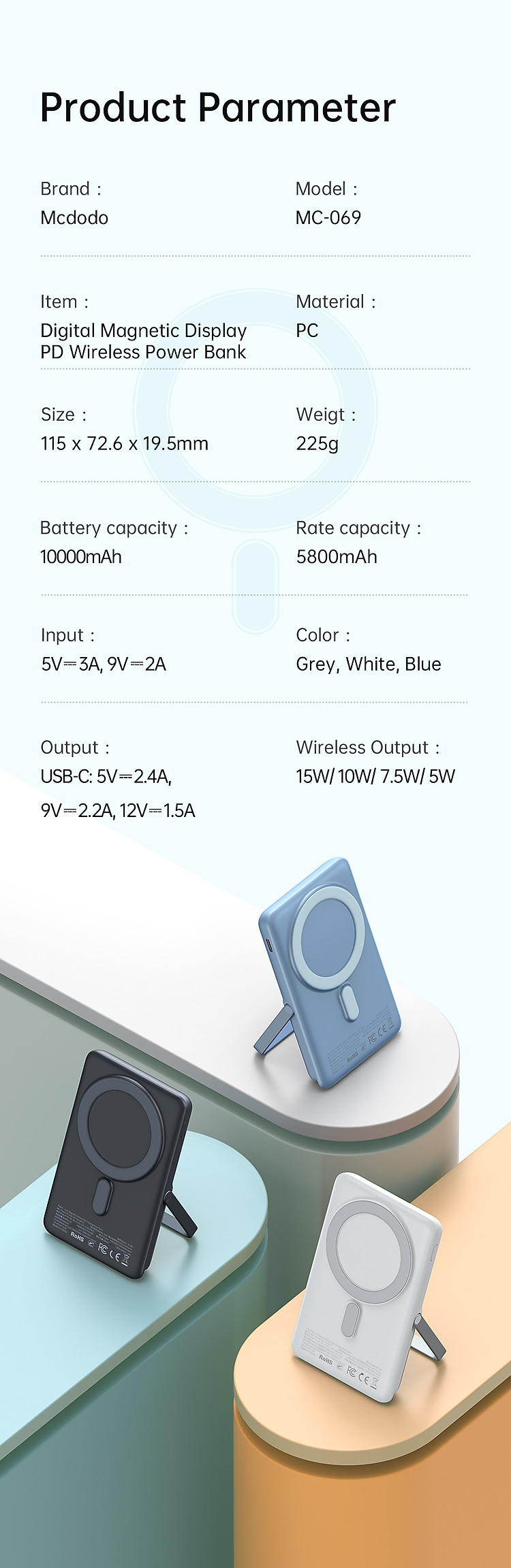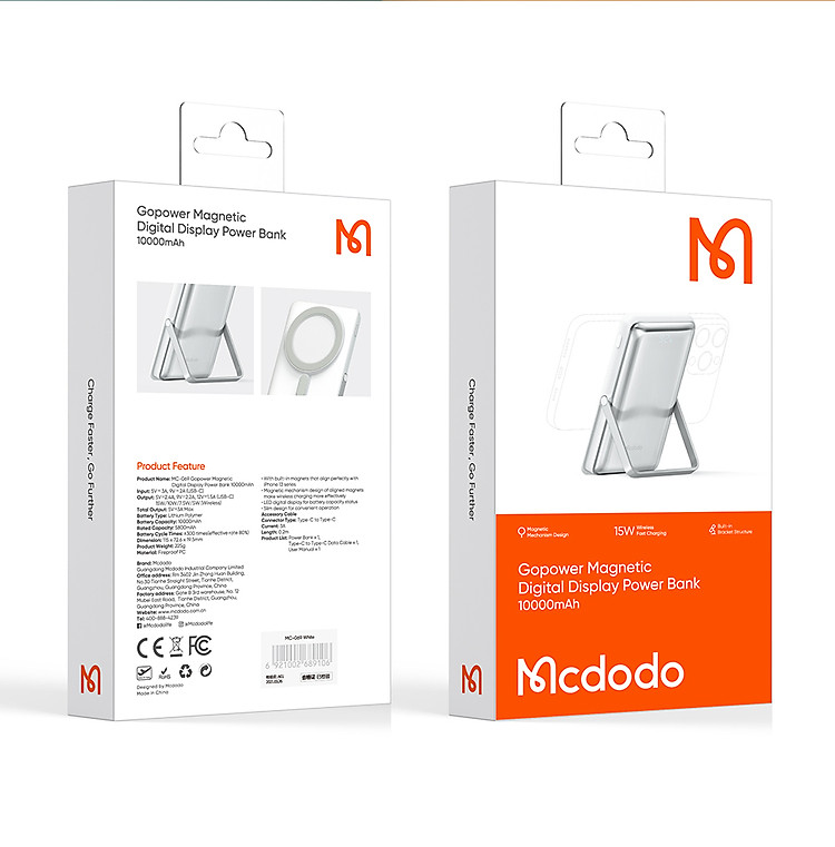 | Tên | Pin Sạc Dự Phòng Mcdodo Gopower Digital Magnetic Display PD 20W Power Bank 10000mAh |