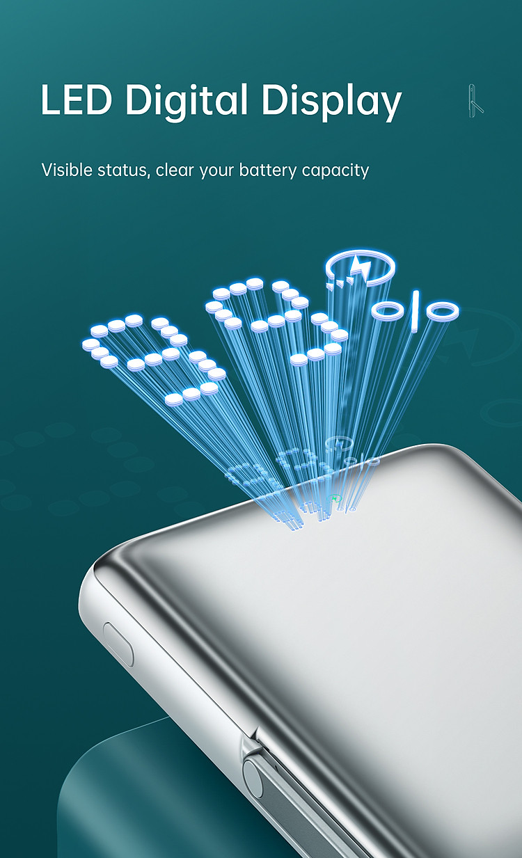 Màn hình số điện tử hiển thị thông tin về lượng pin còn lại một cách chi tiết, giúp bạn dễ dàng theo dõi trạng thái của pin và quản lý tài nguyên năng lượng một cách thông minh. Với cổng Power Delivery (PD) 20W tích hợp, bạn có thể sạc nhanh chóng các thiết bị hỗ trợ PD, giúp tiết kiệm thời gian quý báu của bạn.