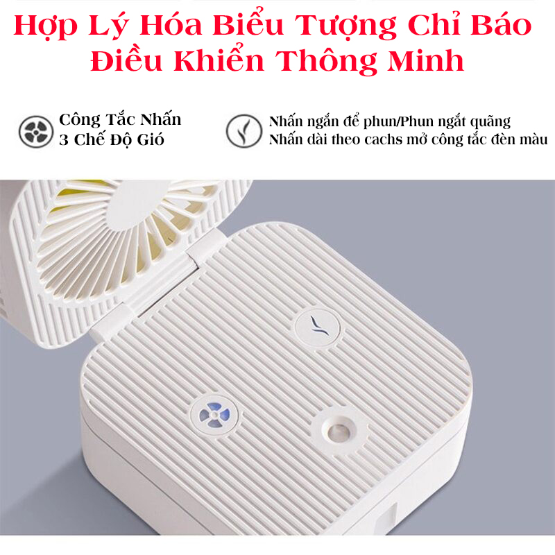 Quạt Hơi Nước Mini Phun Sương Để Bàn Thiết Kế 3 Chế Độ Mát , 2 Chế Độ Phụn Sương , Kiêm Đèn Ngủ Gấp Gọn Siêu Tiện Dụng