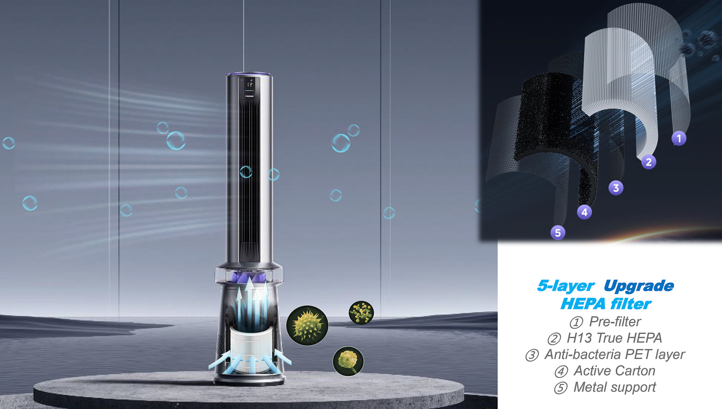 - Quạt tháp kèm lọc không khí 2 trong 1 sử dụng bốn mùa.