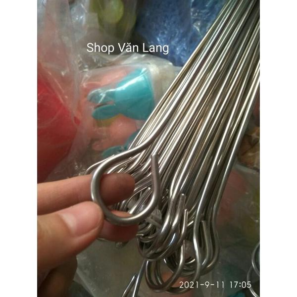 Nhà em bán loại xiên nướng thịt bằng inox dày 4mm cực kỳ cứng cáp, dài 60cm nên thoải mái nướng mà ko lo bỏng tay luôn ạ.