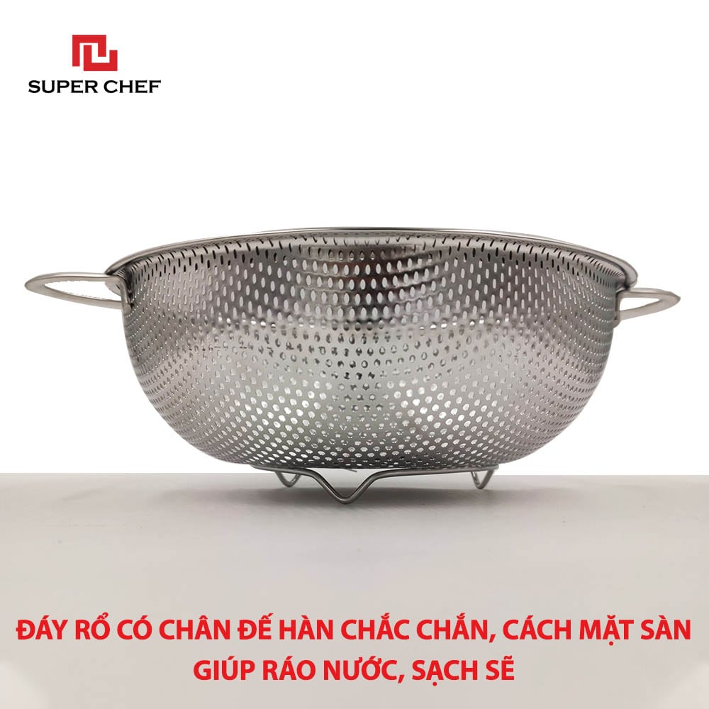 Bên cạnh đó, Rổ Inox 201 Super Chef cam kết sẽ mang đến cho các chị em nội trợ sự hài lòng với thiết kế thông minh và các ưu điểm như: