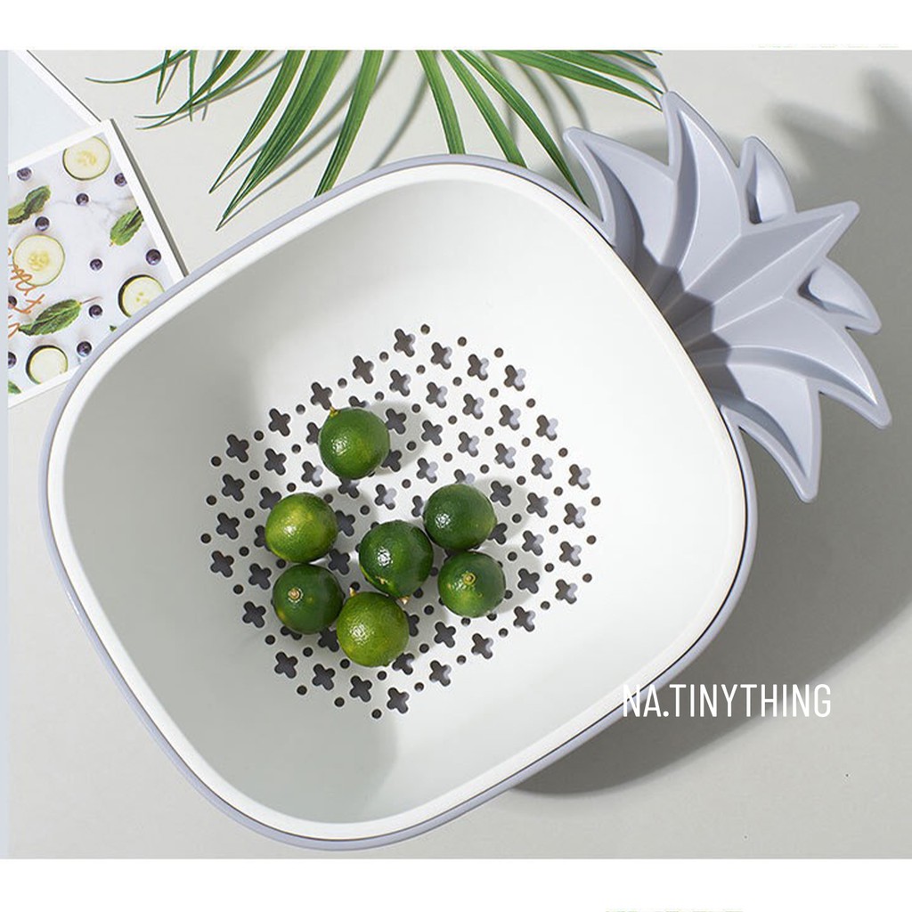 Rổ nhựa hai lớp dùng rửa rau củ trái cây hình quả thơm phong cách Hàn Quốc