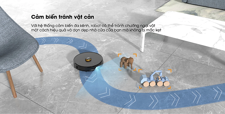 Với hệ thống cảm biến đa kênh, robot có thể tránh chướng ngại vật một cách hiệu quả và dọn dẹp nhà cửa của bạn mà không bị mắc kẹt