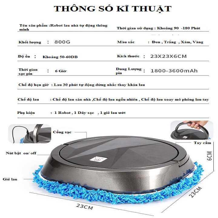 - Phụ kiện: 1 robot,1 giẻ lau ướt, 1 dây sạc
