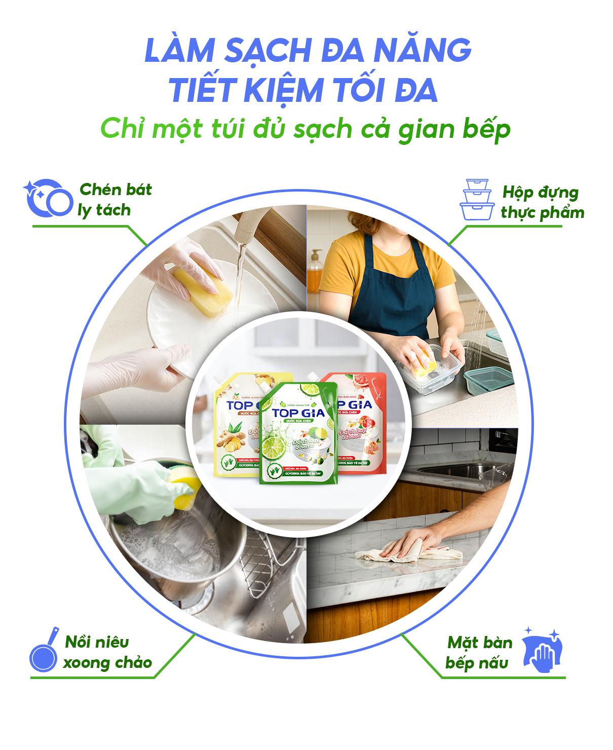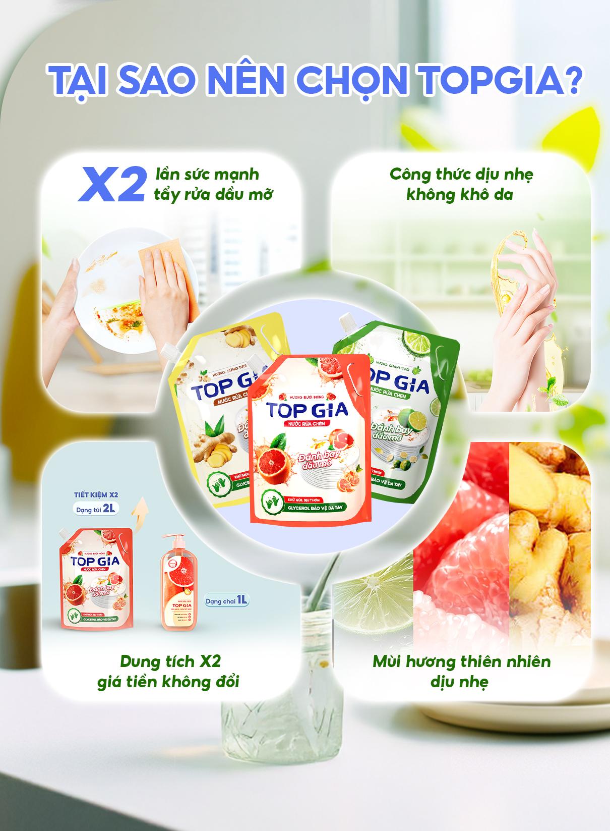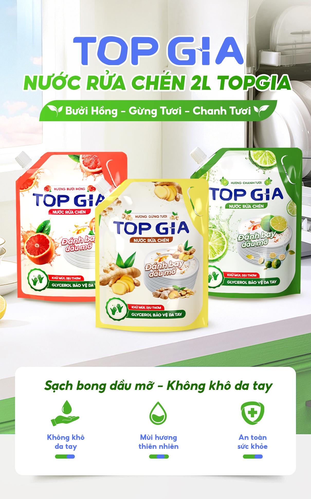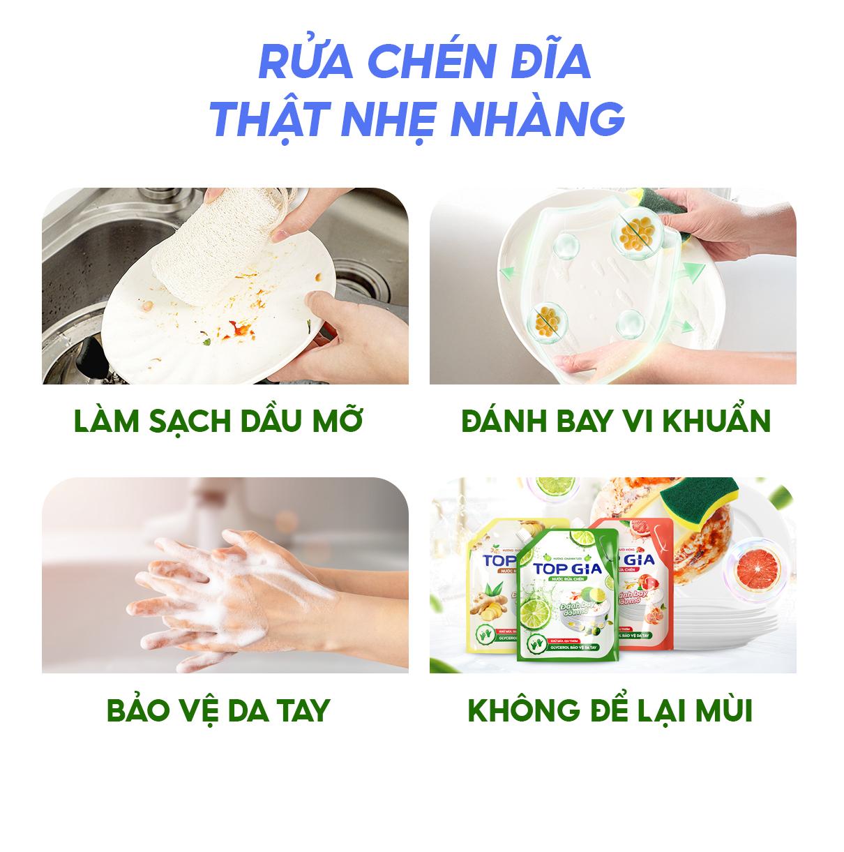 Combo 2 túi 2L nước rửa chén TOPGIA thiên nhiên, sạch hiệu quả và an toàn cho cả gia đình
