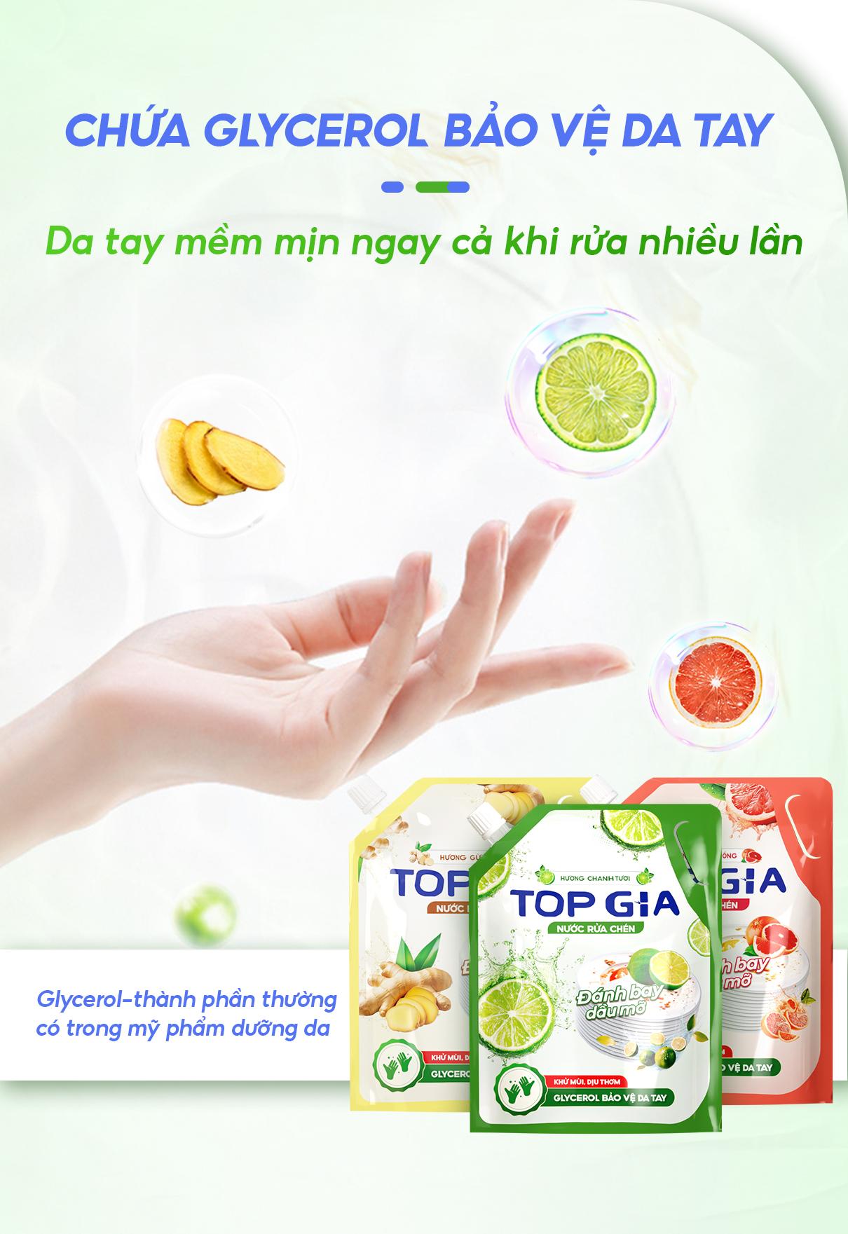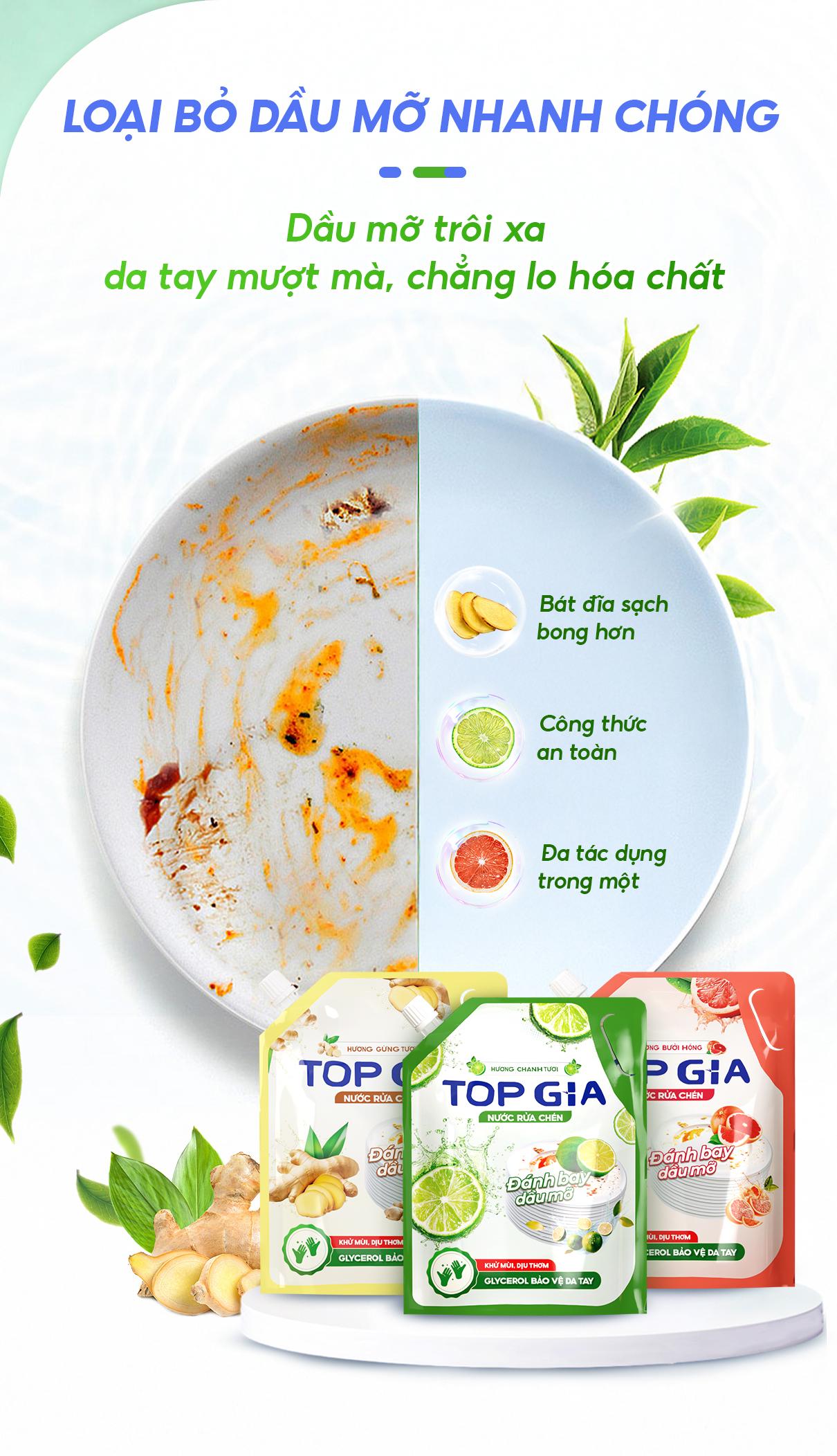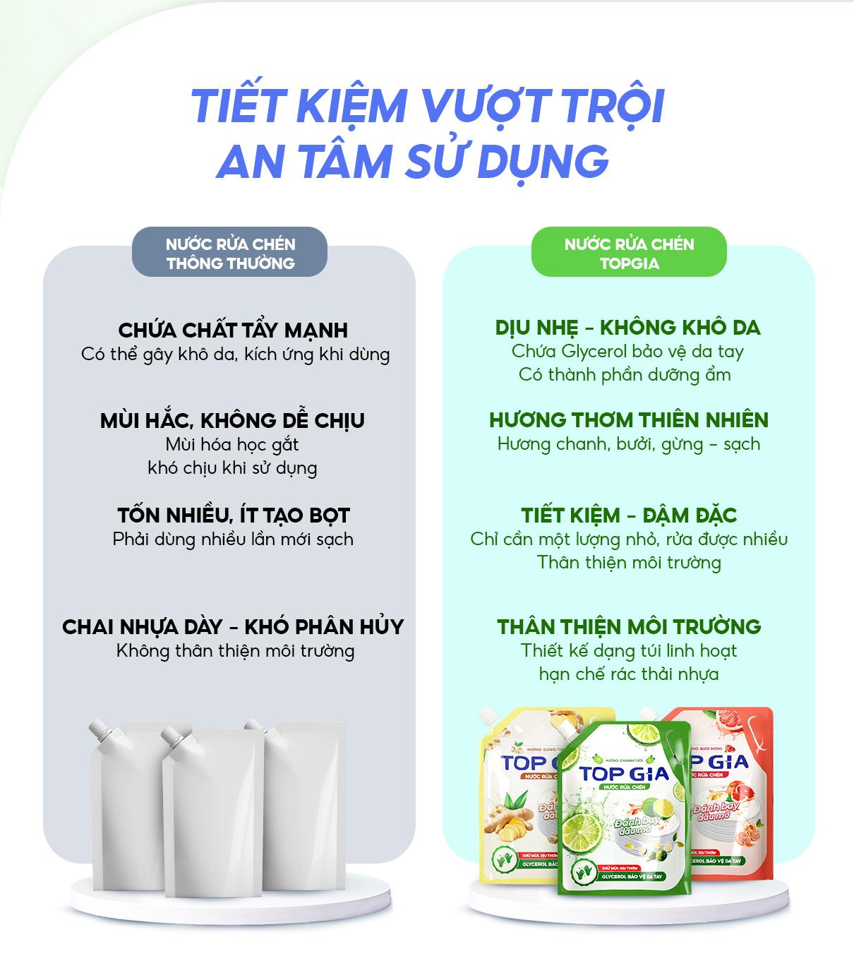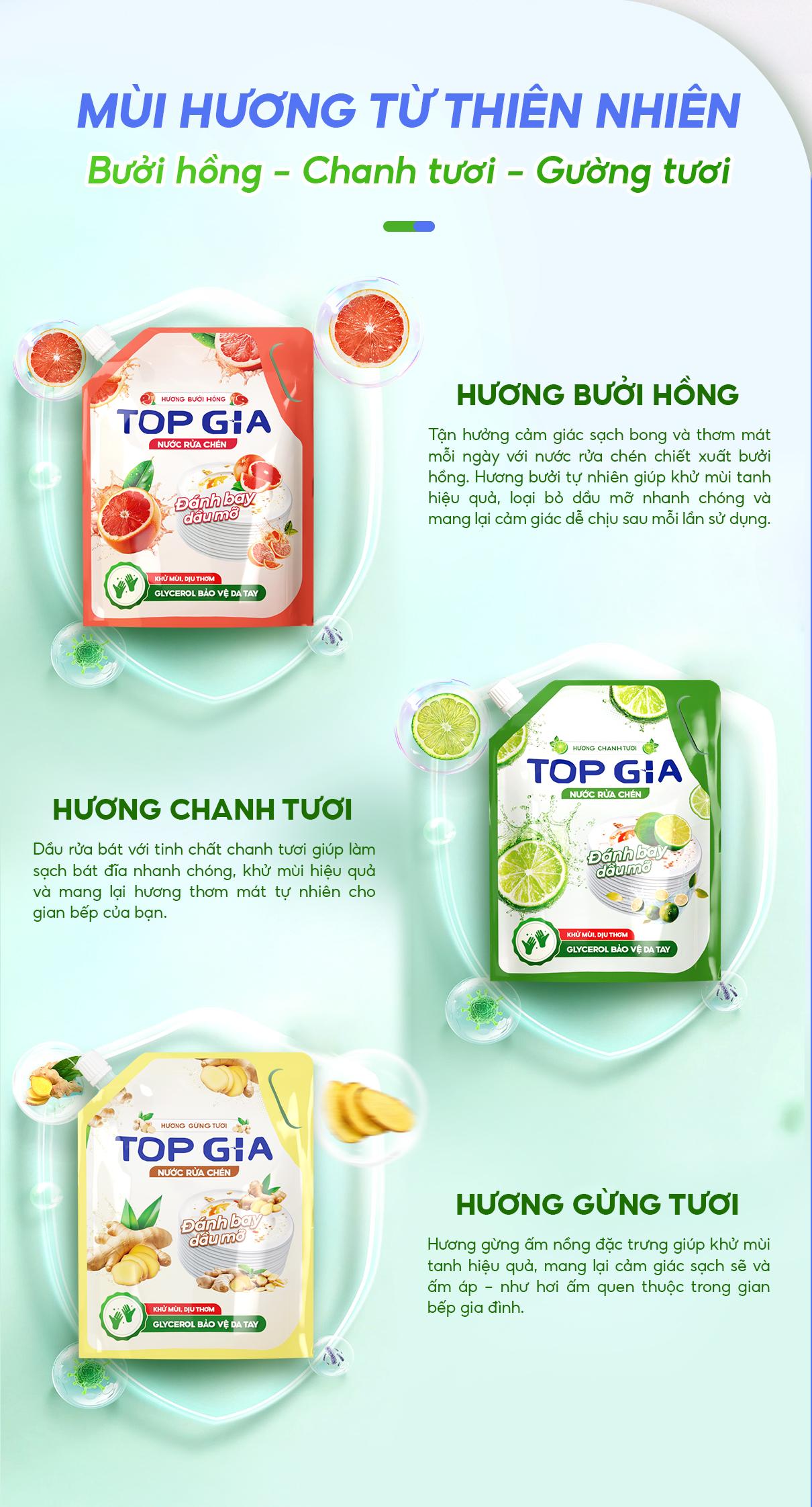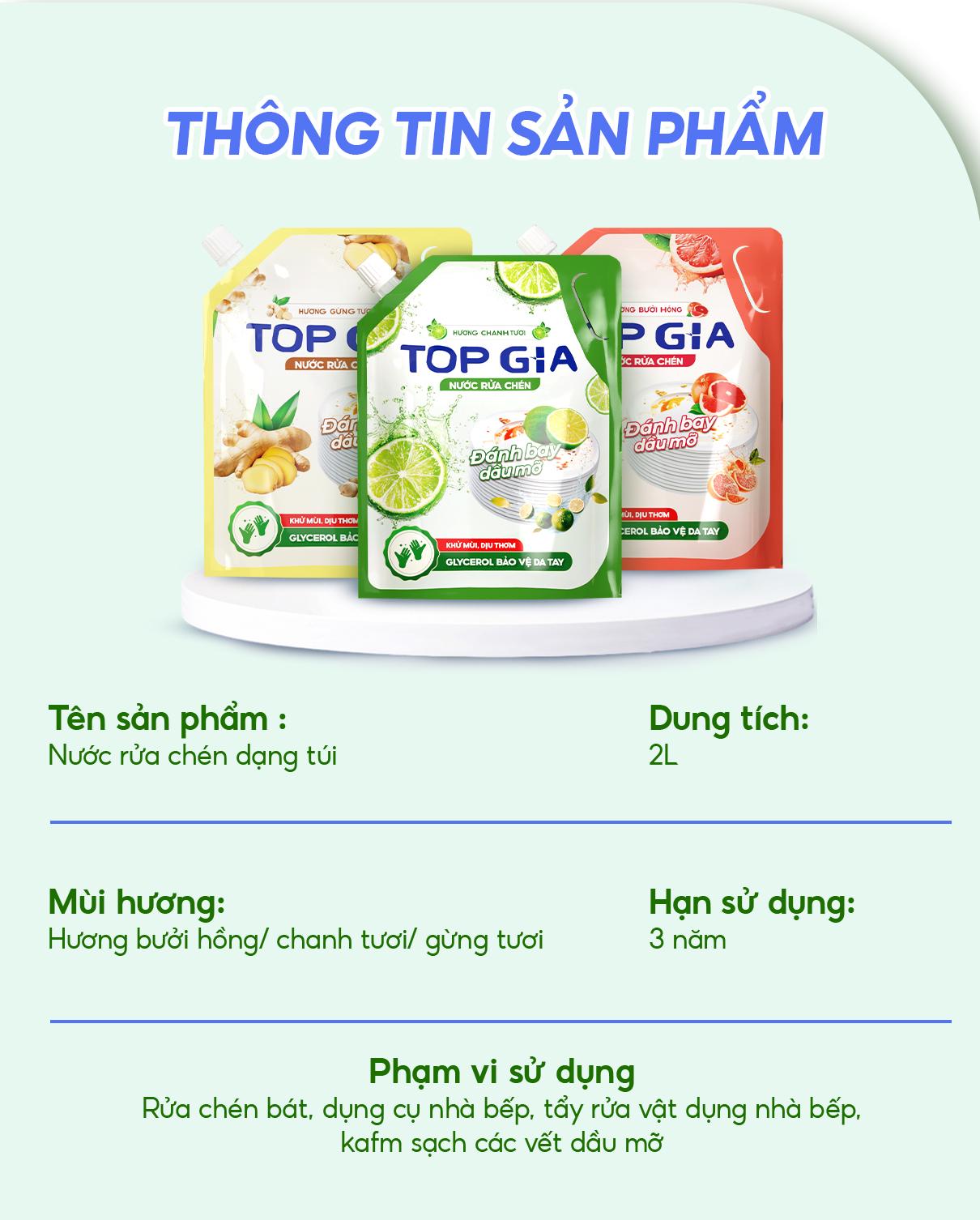 Combo 2 túi 2L nước rửa chén TOPGIA thiên nhiên, sạch hiệu quả và an toàn cho cả gia đình