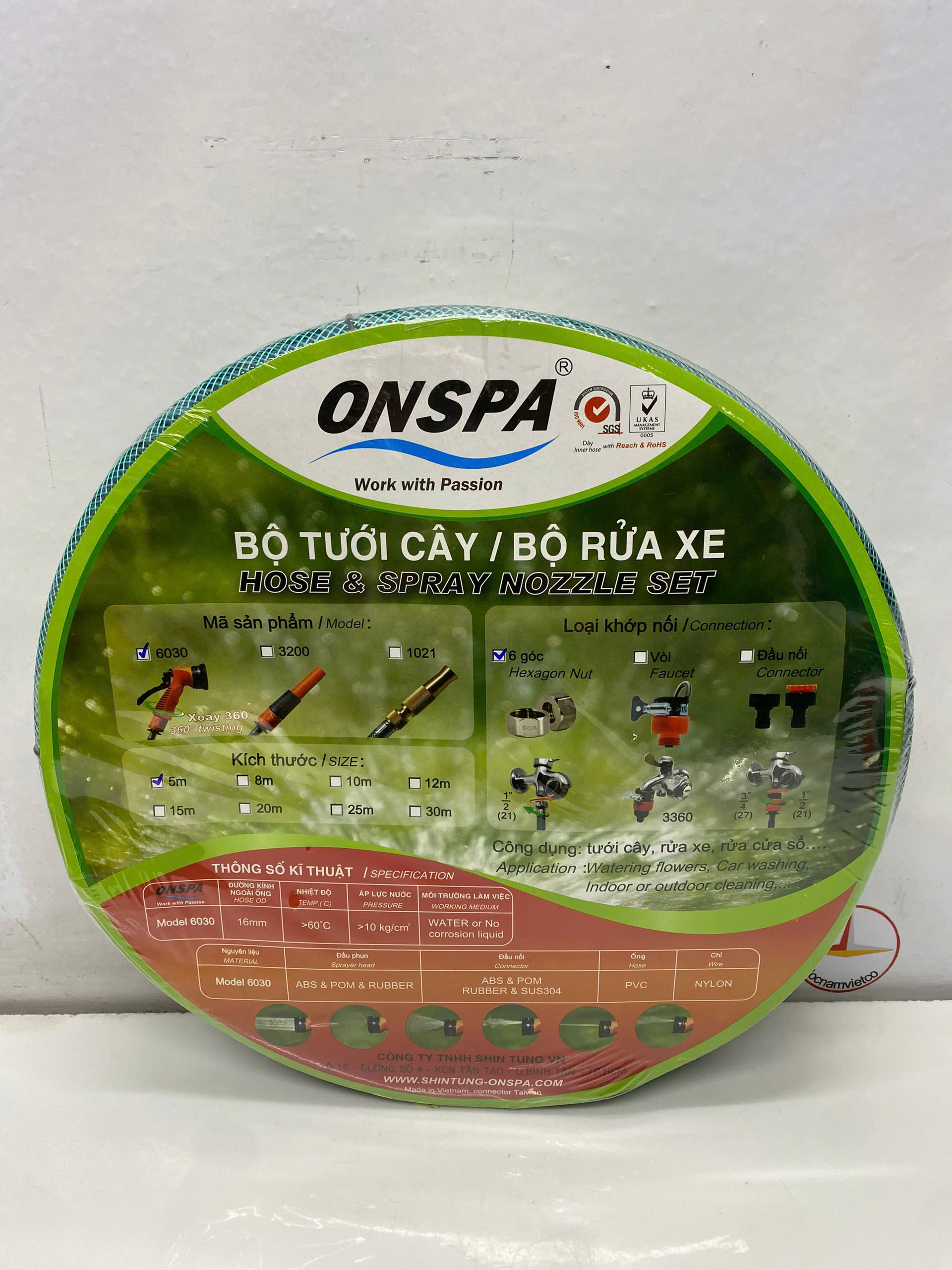 Bộ rửa xe tưới cây Onspa 6030 được thiết kế vòi sáu chế độ phun, chắc chắn tháo lắp dễ dàng chuyên dùng gắn vào nguồn nước để rửa xe hoặc tưới cây cảnh, hoa, rửa sân,… vòi xịt mạnh điều chỉnh được tia nước dễ dàng. Dây nhựa đan thêm lưới chịu được áp lực nước cao, chống tia UV, .