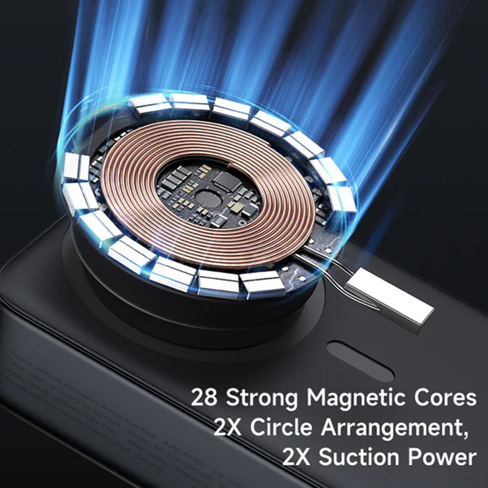 Thiết Kế Kèm Nam Châm: Với thiết kế kèm nam châm, bạn có thể dễ dàng gắn thiết bị di động lên sạc dự phòng và sạc không dây mà không cần lo lắng về việc mất kết nối.