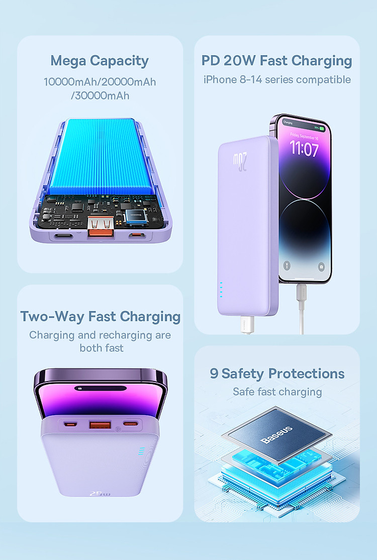 Sản phẩm cung cấp công suất sạc 20W, giúp nạp pin cho điện thoại nhanh chóng hơn so với các sản phẩm sạc thông thường. Sản phẩm đi kèm với một cáp USB to C, với chiều dài 30cm, cho phép người dùng kết nối sản phẩm với các thiết bị di động để sạc pin.