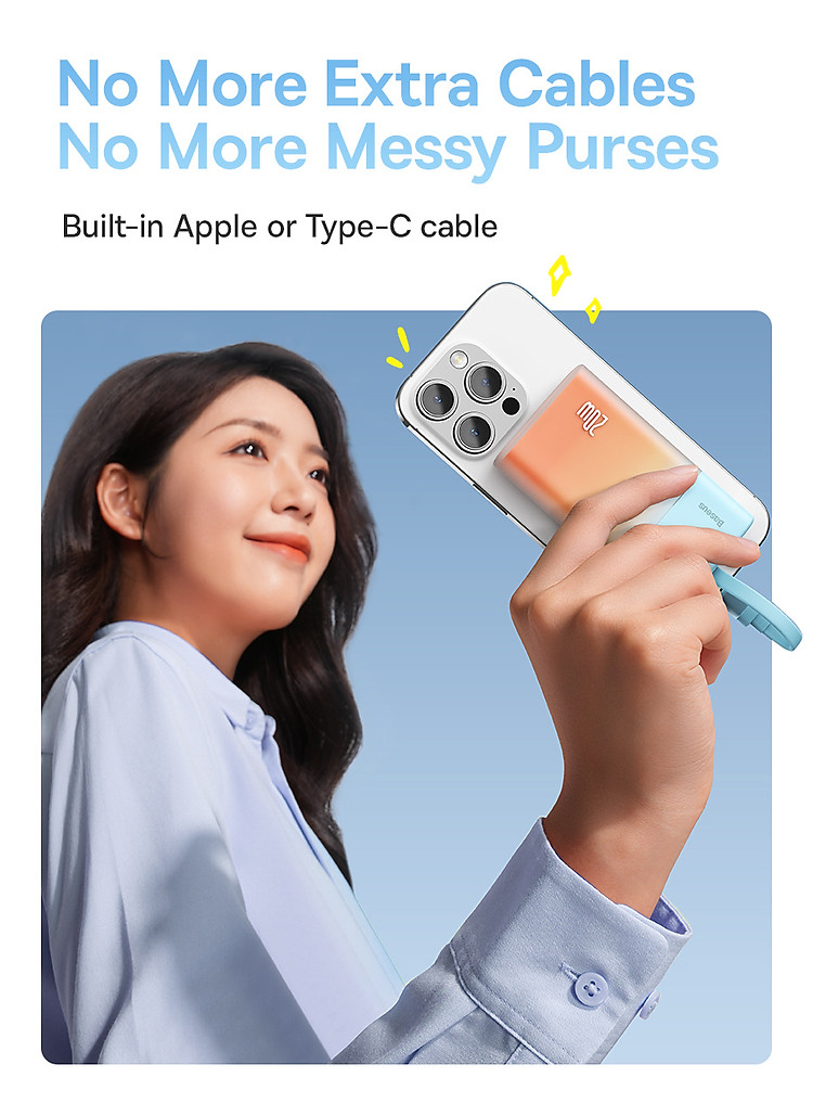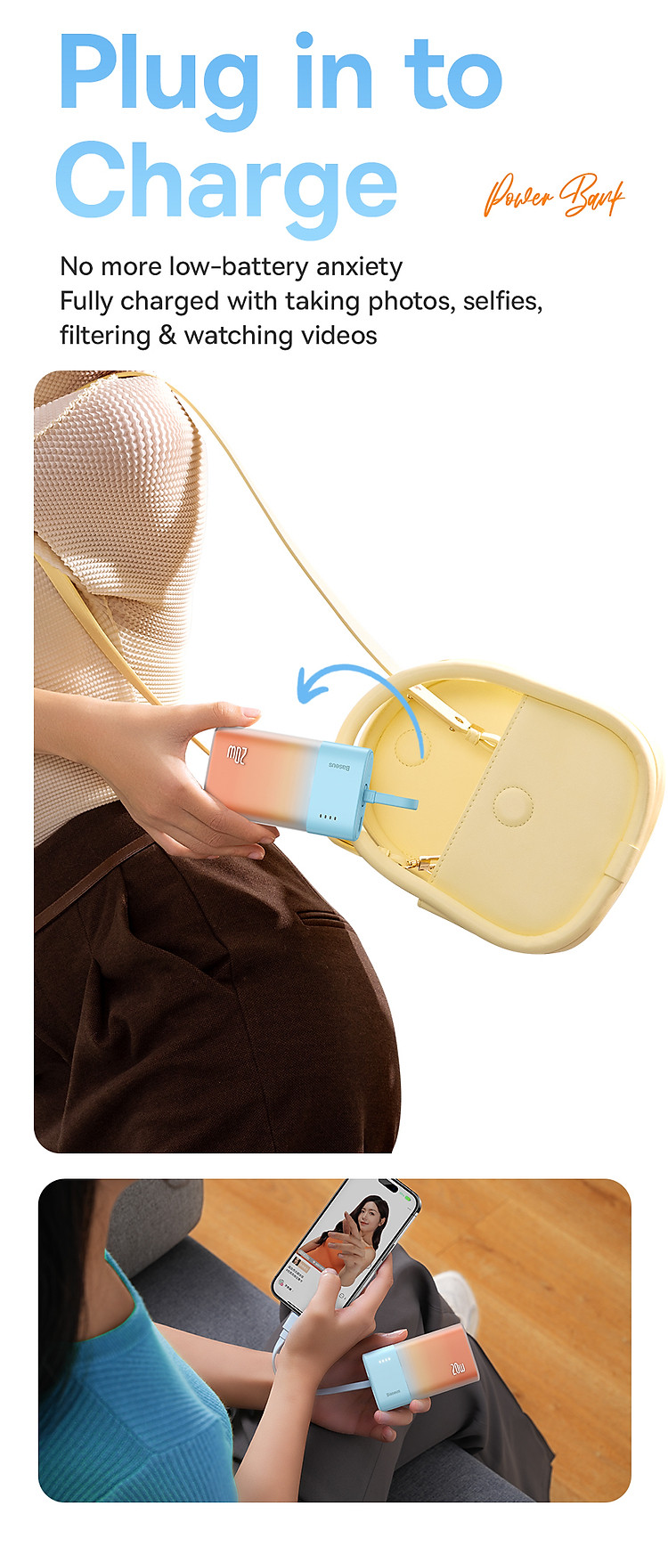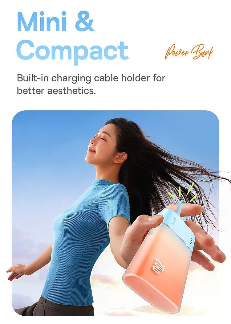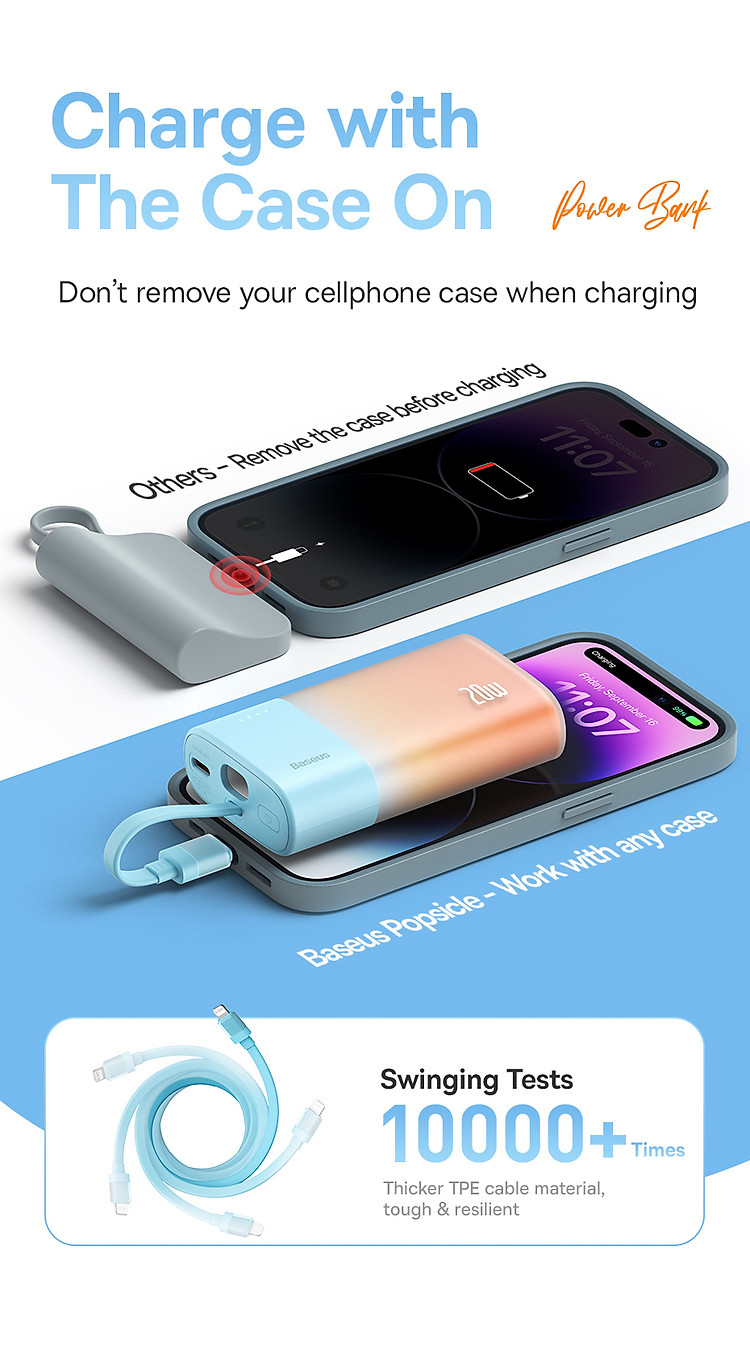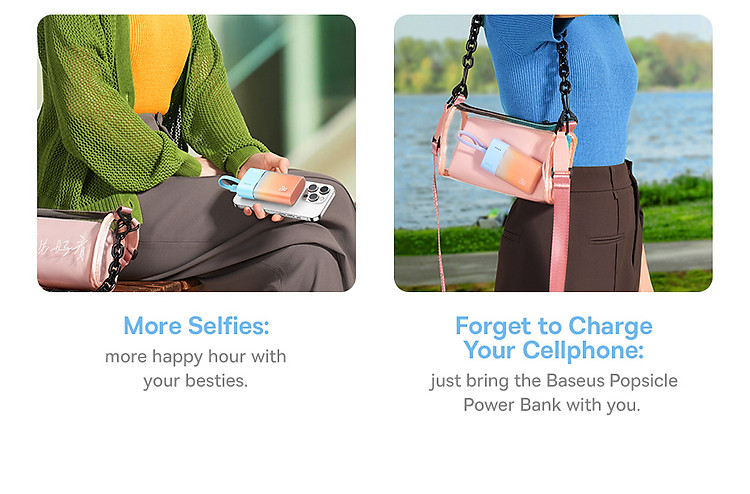 Sạc dự phòng OS-Baseus Popsicle có thiết kế nhỏ gọn và trọng lượng nhẹ, dễ dàng mang theo bên mình khi bạn di chuyển. Bạn có thể cất giữ nó trong túi xách, balo hoặc túi quần áo một cách tiện lợi.