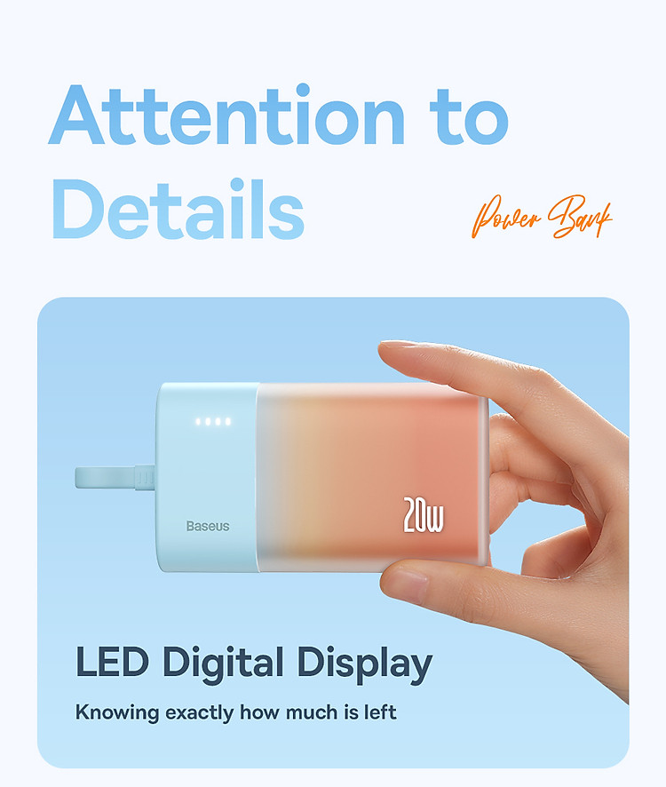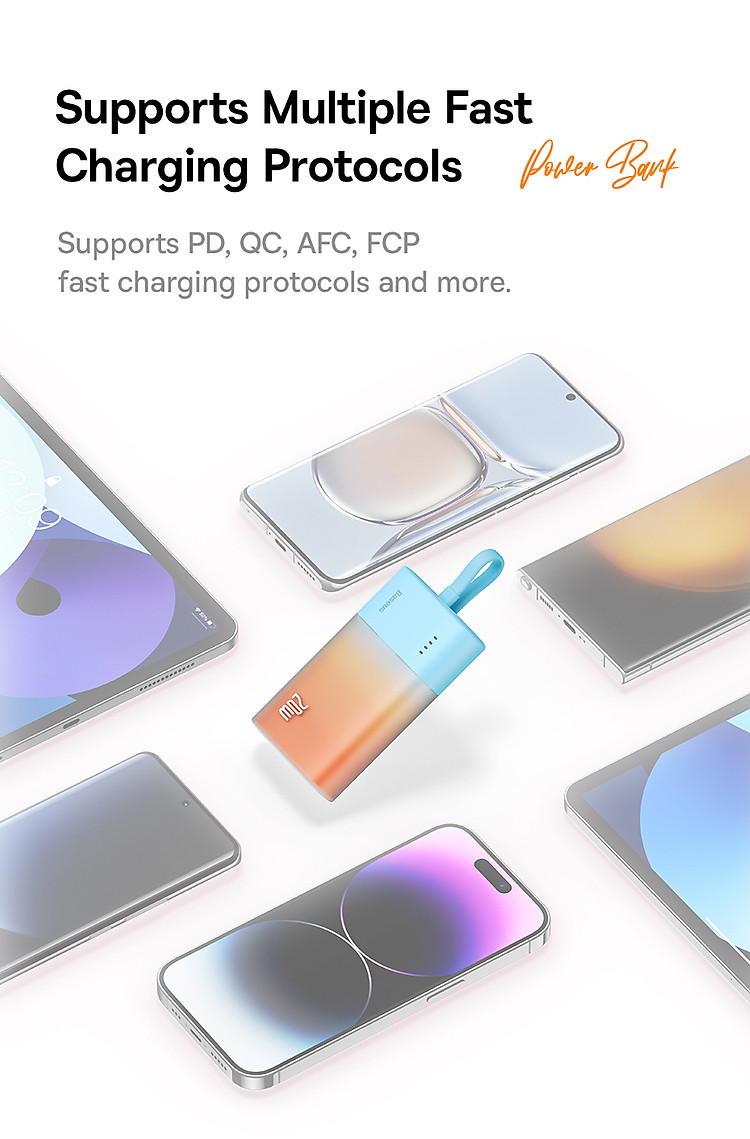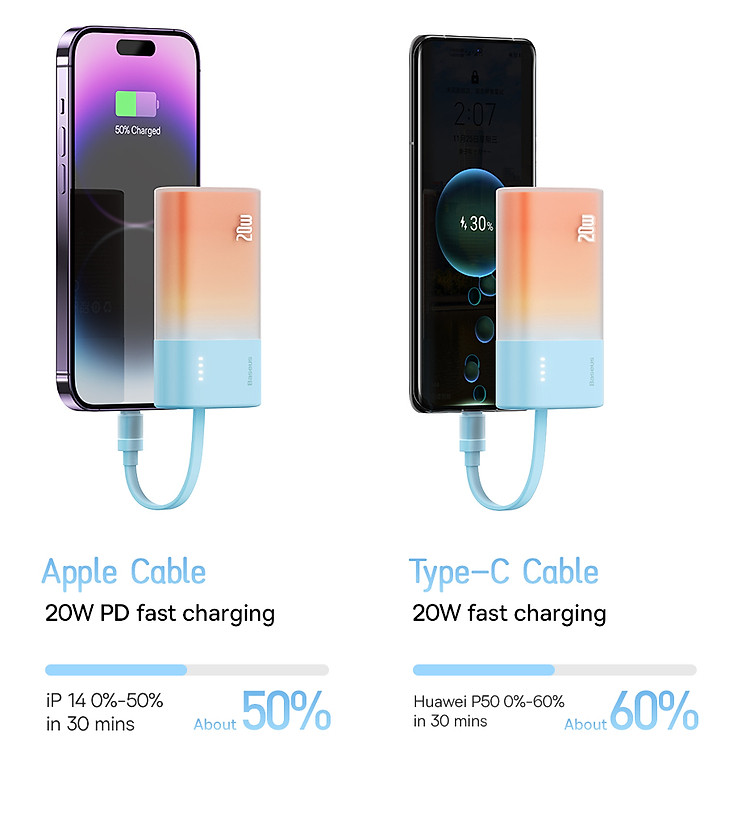 Sạc dự phòng Baseus Popsicle hỗ trợ công nghệ sạc nhanh 20W, giúp bạn nạp năng lượng nhanh chóng cho thiết bị của mình. Bạn có thể sạc nhanh các thiết bị hỗ trợ sạc nhanh như điện thoại di động, giúp tiết kiệm thời gian và tiện ích.