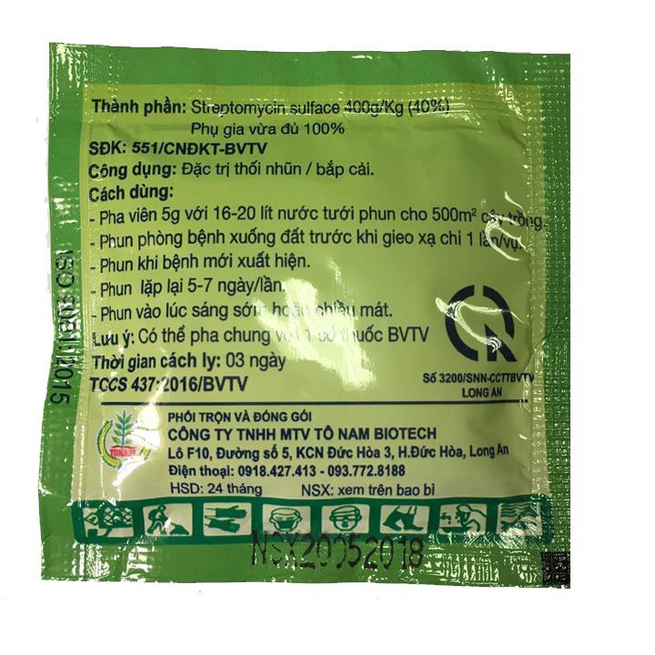 Streptomycin sunfat 40%, phụ gia vừa đủ 100%.
