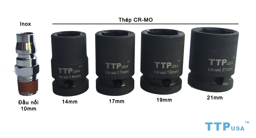 - Súng vặn ốc 1/2" TTPusa 202-WS dùng khí nén để hoạt động nên có lực vặn rất mạnh kết hợp với 2 búa giúp bạn tháo những con bu lông khó tháo. Bạn sẽ được tặng kèm 4 đầu khẩu đen với các phi: 8, 10, 12, 13mm khi mua Súng vặn ốc 1/2" TTPusa 202-WS.