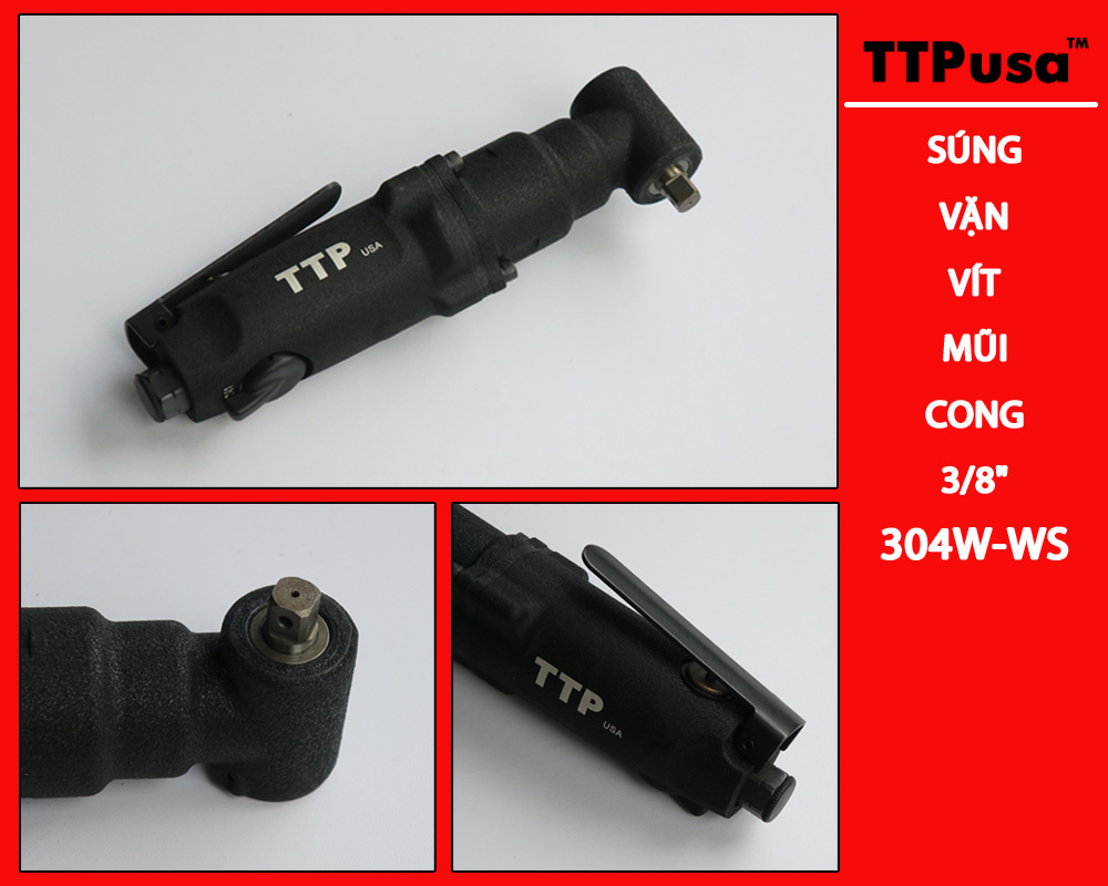 - Súng vặn vít mũi cong 3/8" TTPusa 304W-WS chuyên dùng để vặn ốc vít để lắp ráp hay để khoan. Súng vặn vít TTPusa không dùng điện mà dùng khí nén tạo ra từ máy nén khí. Rất thích hợp các tiệm sửa chữa, bảo trì và nhà máy xí nghiệp.