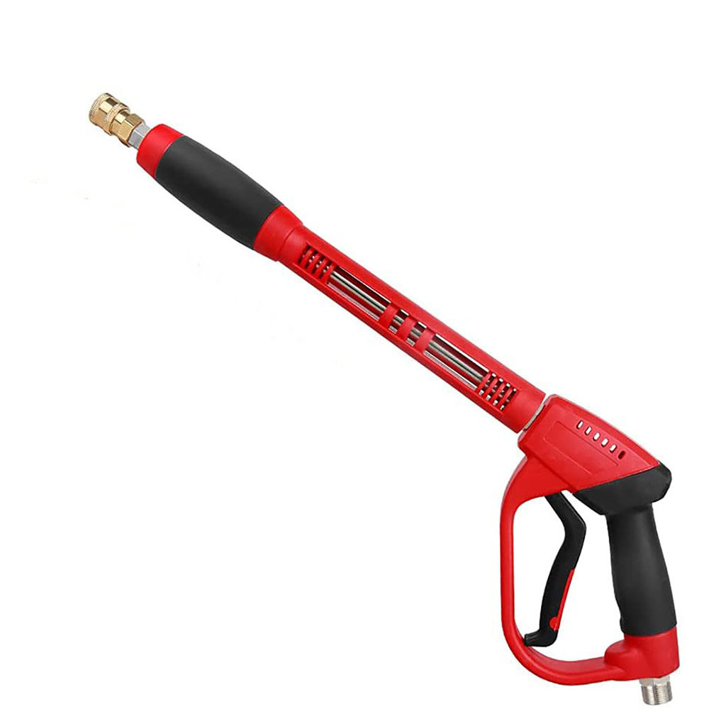 - Báng súng rửa xe cao áp đỏ ngắn gồm cò súng và đầu kết nối với dây cao áp, báng súng được thiết kế vừa với khung tay của người thợ.