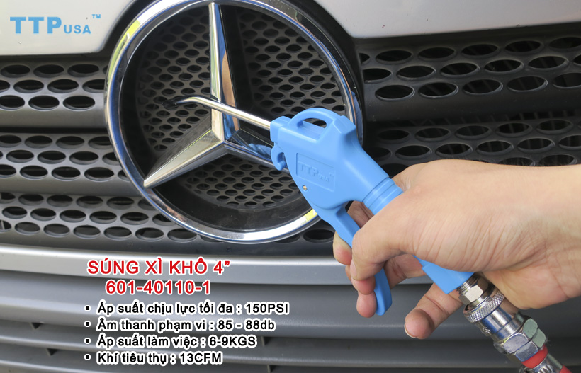 - Súng xì khô 4" TTPusa là dụng cụ không thể thiếu đi kèm với máy nén khí, súng thổi hơi ra để thổi bụi hay nước với một áp lực khí lớn để bay bụi bám lên hay nước bám trên sơn, cơ khí.