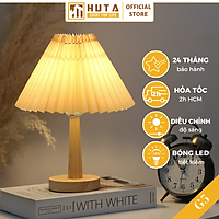Đèn Ngủ Để Bàn HUTA G5 Gỗ Chao Xếp Ly Vintage Dễ Thương, Decor Trang Trí Phòng Ngủ, Đọc Sách Đầu Giường, Điều Chỉnh Độ Sáng, Đèn Vàng Bóng LED Tiết Kiệm Điện