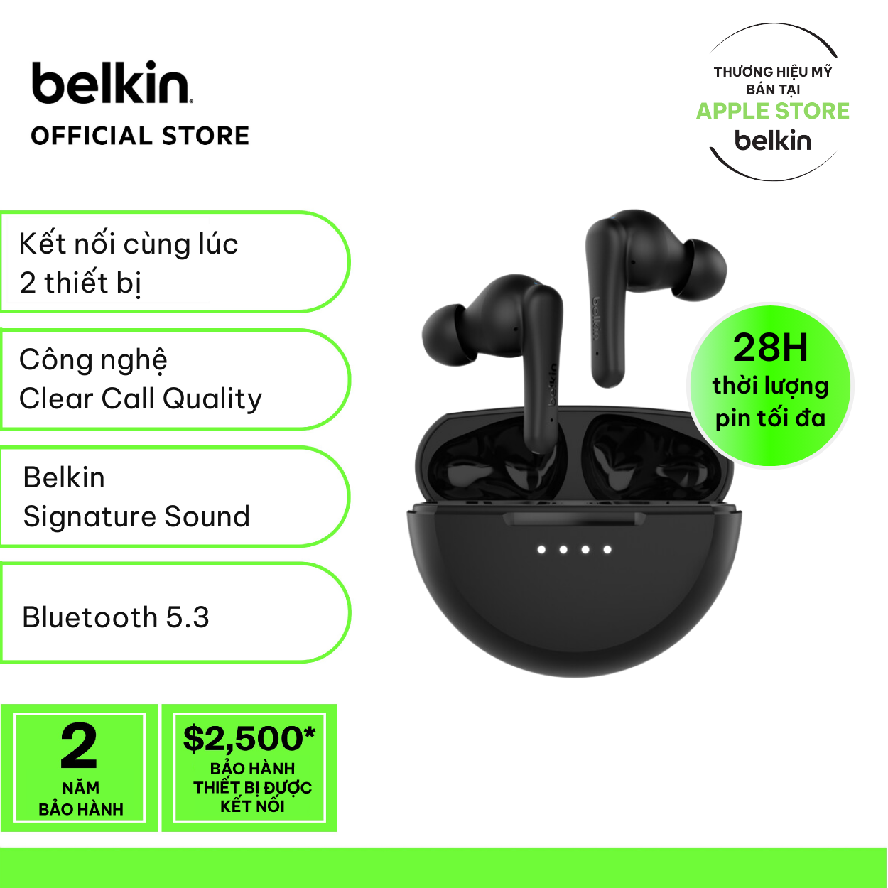 - Âm thanh Belkin Signature mang đến âm thanh trung thực, đầy đủ và cân bằng.