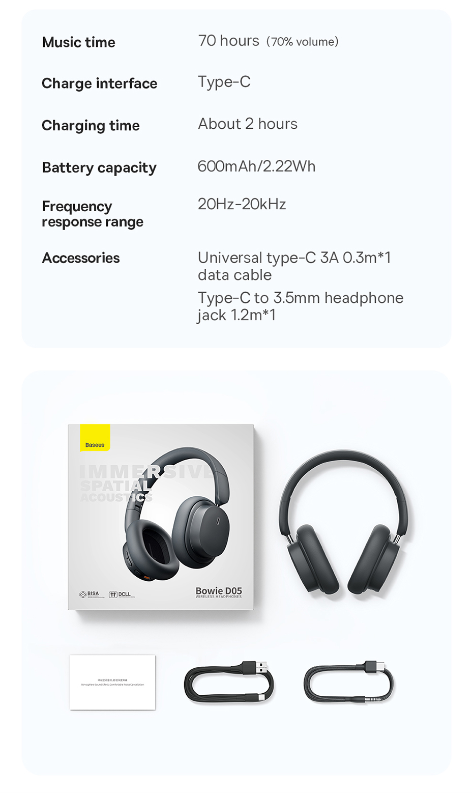 Tai nghe chụp tai cao cấp Baseus Bowie D05 Wireless Headphones là một sản phẩm chất lượng cao được thiết kế để mang đến cho người dùng trải nghiệm âm thanh tuyệt vời và cảm giác thoải mái khi sử dụng.