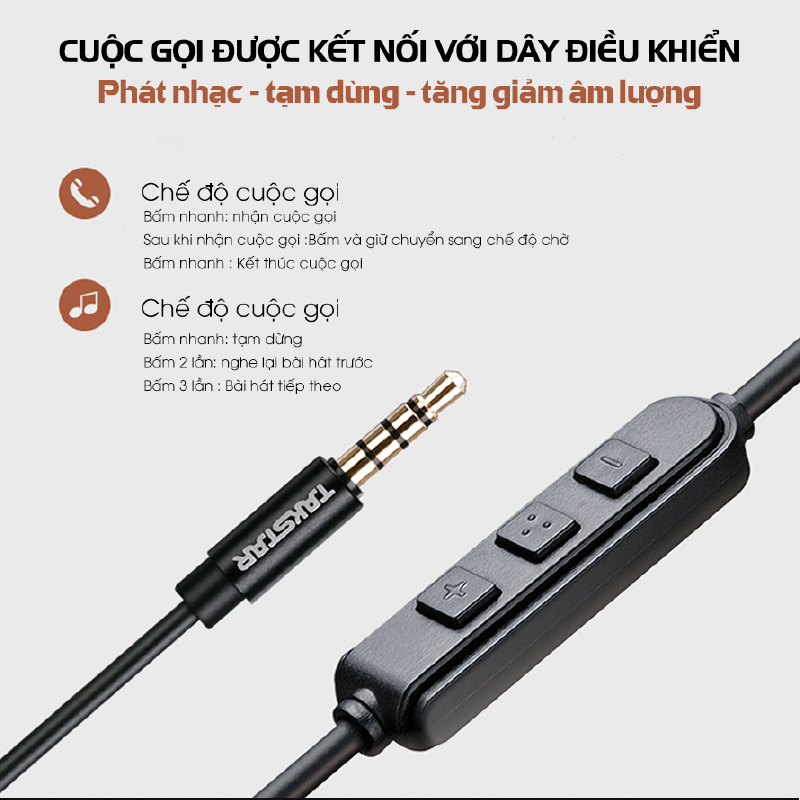 - Có dây điều khiển để điều khiển cuộc gọi, phát nhạc, tăng giảm âm lượng