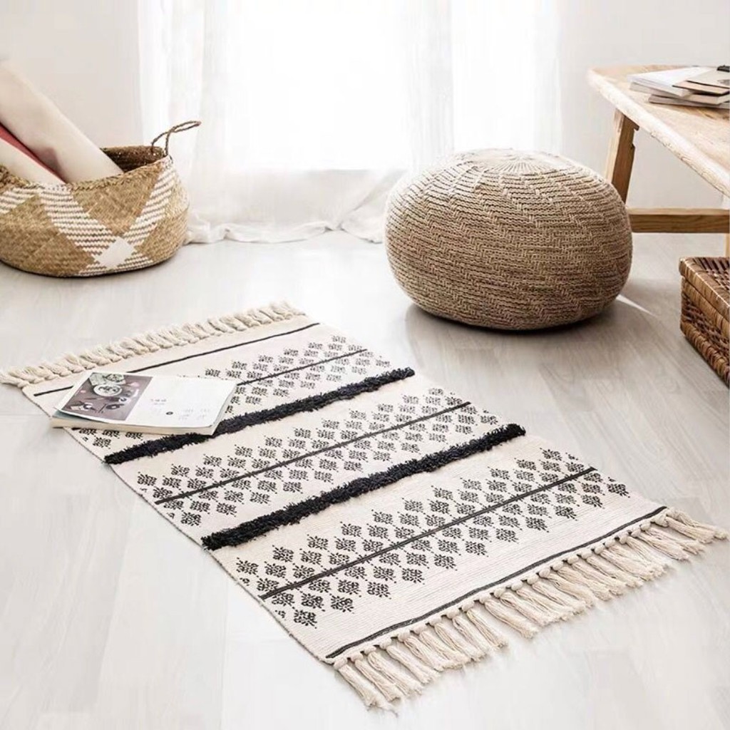 Nhà cửa & Đời sống > Trang trí nhà cửa > Thảm chùi chân || Thảm dệt nổi 3D sợi cotton và linen có tua rua (60x90cm+20cm tua rua)