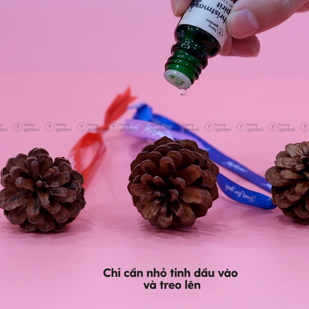 Khi nhỏ tinh dầu Heny Garden vào quả thông khô và treo lên vài vị trí đặc biệt như tủ quần áo, cạnh góc bàn làm việc, phòng tắm. Mùi hương từ tinh dầu sẽ hòa quyện với hương thơm đặc trưng từ gỗ Thông và lan tỏa trong không gian.