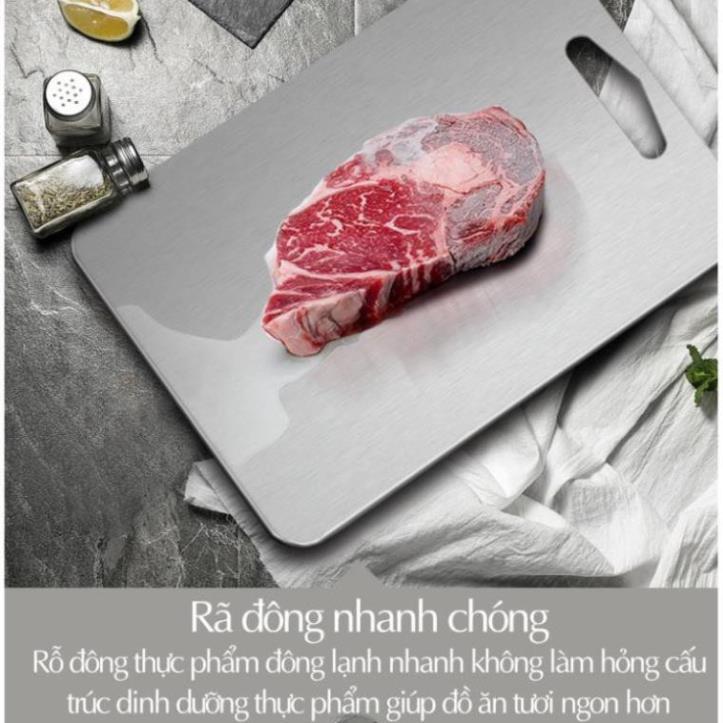 Thớt inox hạn chế được mọi nhược điểm của thớt gỗ là hay bị ẩm và mốc, thớt inox vừa nhỏ gọn nhẹ, lại luôn sạch sẽ. Chưa kể các mẹ có thể dùng mặt thớt để rã đông đồ ăn rất nhanh