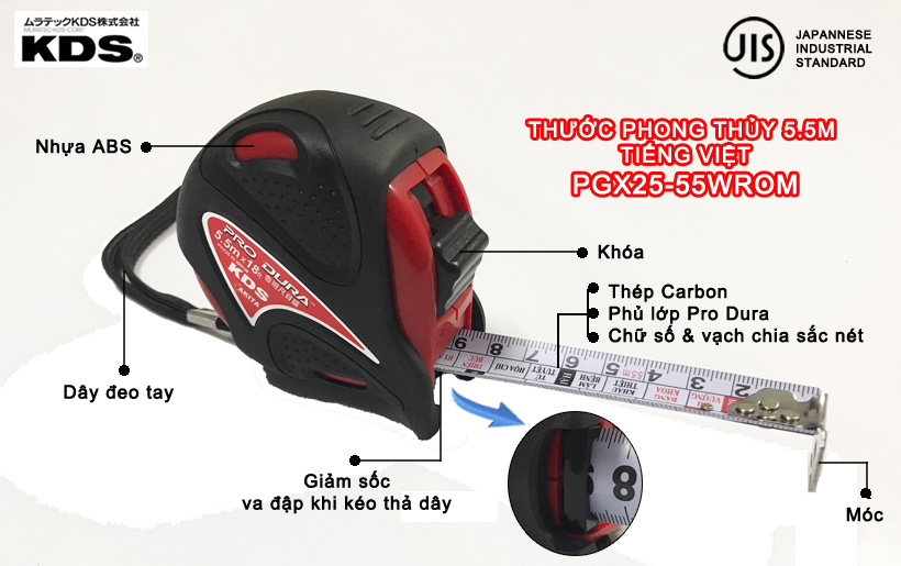 GIỚI THIỆU THƯỚC PHONG THỦY 5.5M KDS PGX25-55WROM TIẾNG VIỆT: