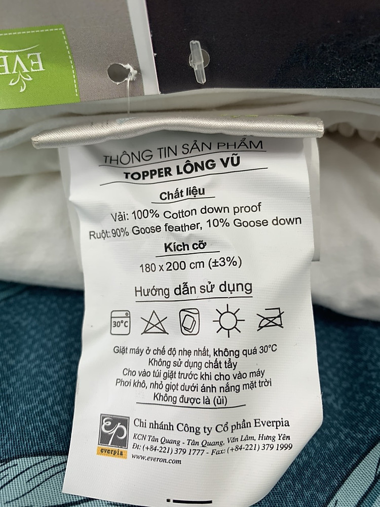 – Tên sản phẩm: Tấm topper lông vũ Everon