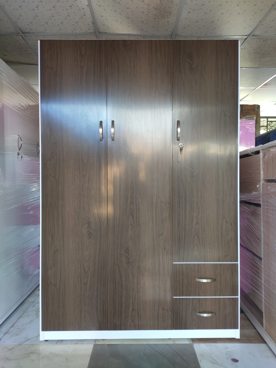 Tủ 2 buồng treo, 1 ngăn xếp đồ và 2 ngăn kéo, sử dụng đủ cho 2 người lớn. Ngăn kéo được bố trí khoa học và tiện dụng.