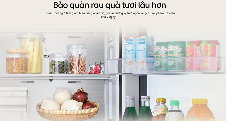 Công nghệ LINEARCooling làm giảm biến động nhiệt độ, thực phẩm tươi ngon đến 7 ngày.