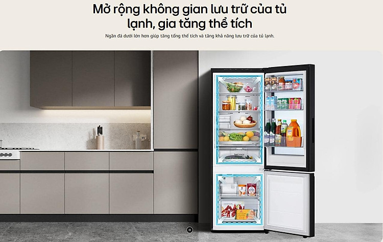 Tủ lạnh LG Inverter 340 lít LBB33BLMAI có kiểu tủ ngăn đá dưới, dung tích 340 lít phù hợp 3 – 4 thành viên sử dụng.