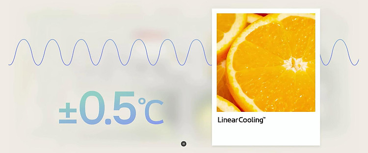 LinearCooling giúp giảm thiểu tối đa sự dao động nhiệt độ trong tủ, chỉ dao động ±0.5 độ C, từ đó giữ được độ tươi ngon và hương vị nguyên bản của thực phẩm lên đến 7 ngày.
