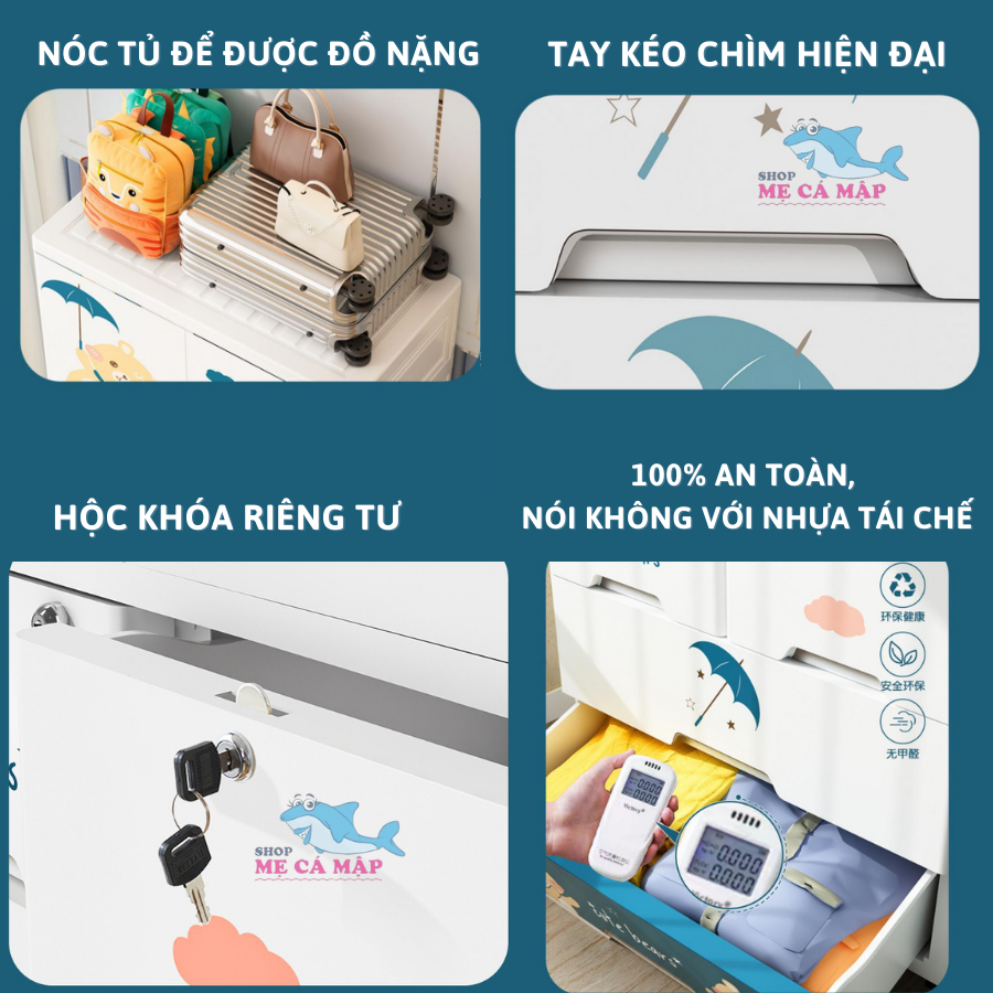 -Hai ngăn tủ có khóa bảo mật, ba mẹ có thể cất giữ những món đồ bí mật, riêng tư.